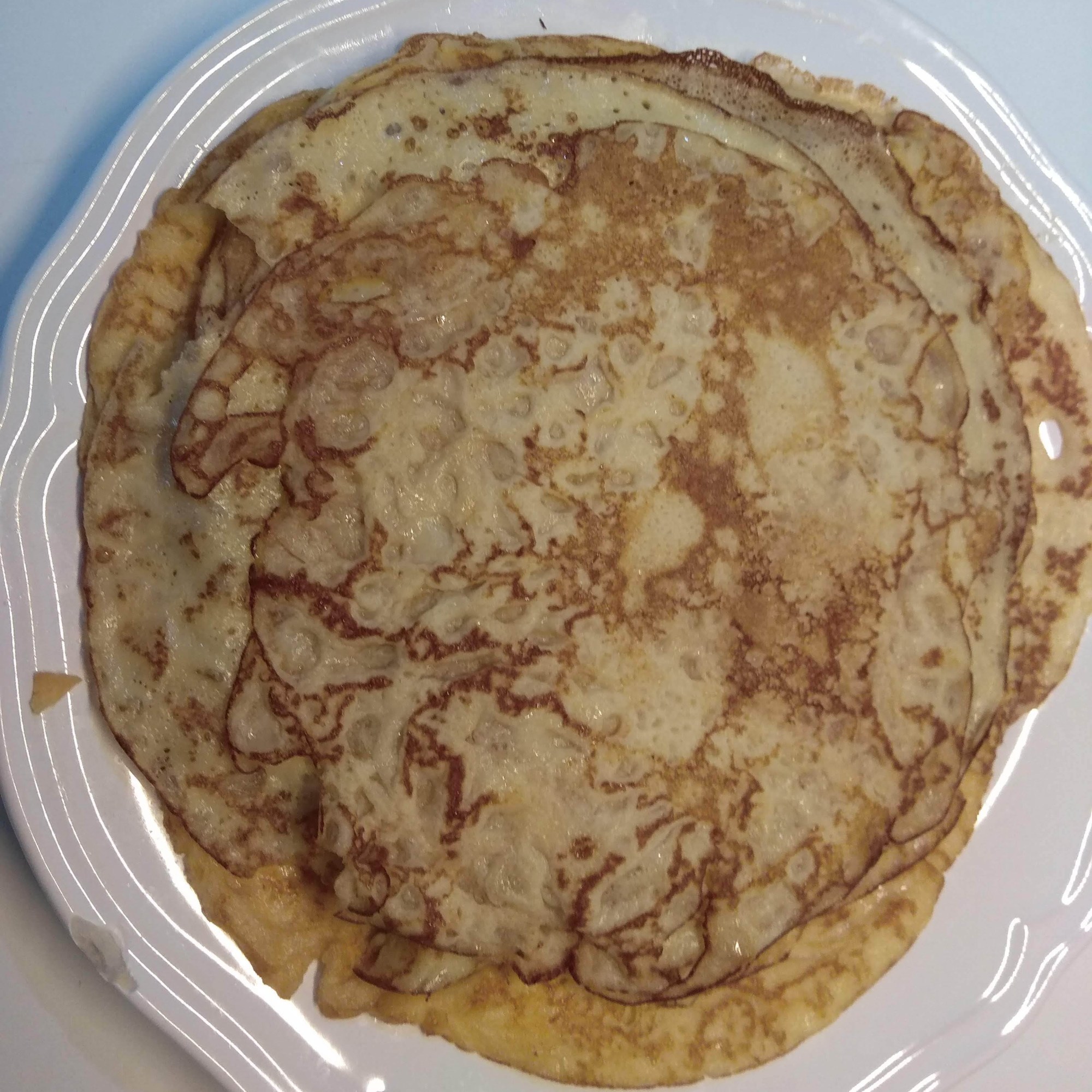 - Calentamos una sartén antiadherente a fuego alto, ponemos un poquito de mantequilla. la derretimos y añadimos un cazo de masa. Dejamos un par de minutos, movemos y con una espátula damos la vuelta, dejamos que se haga y ponemos en un plato. Reservamos.