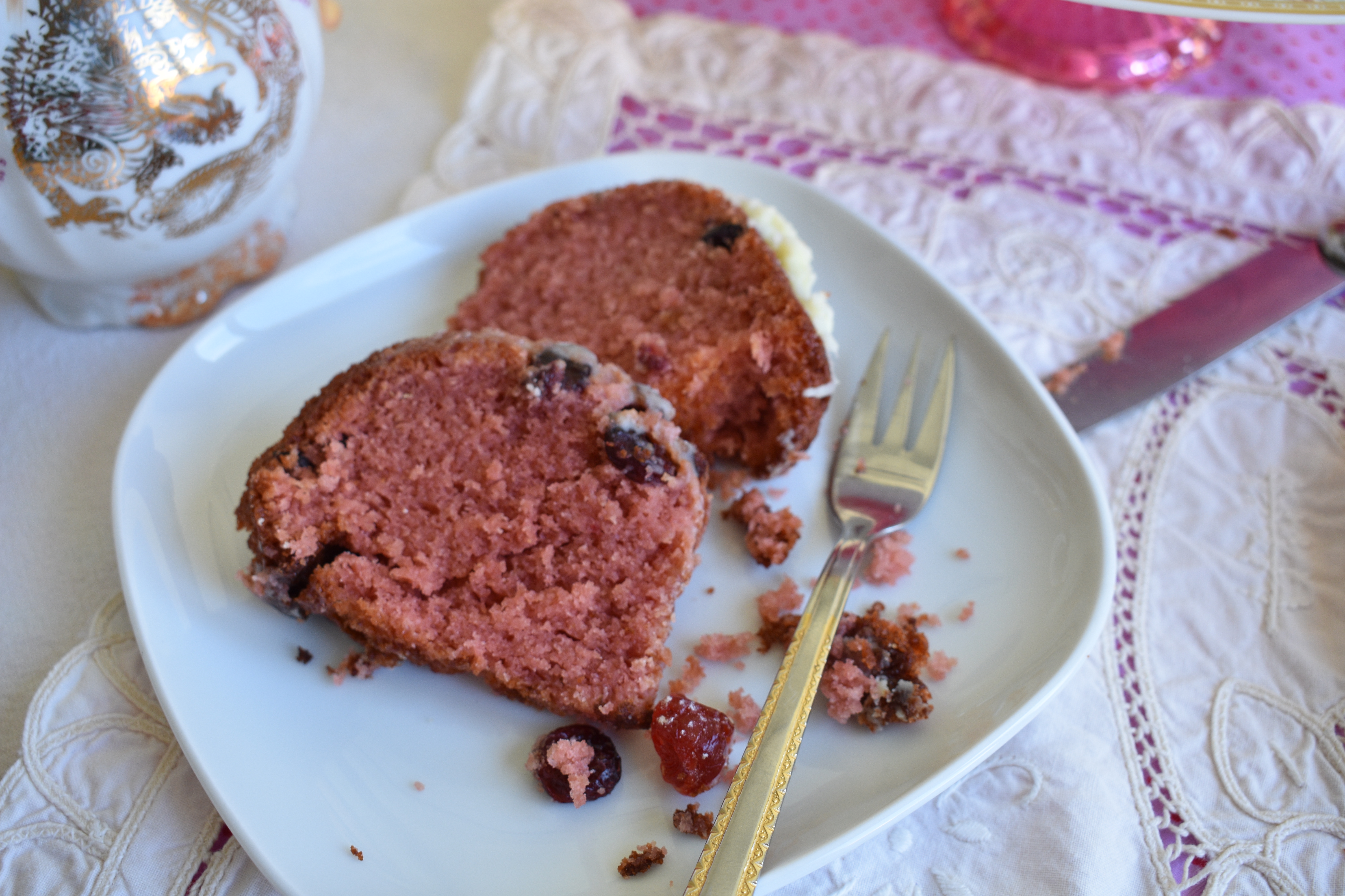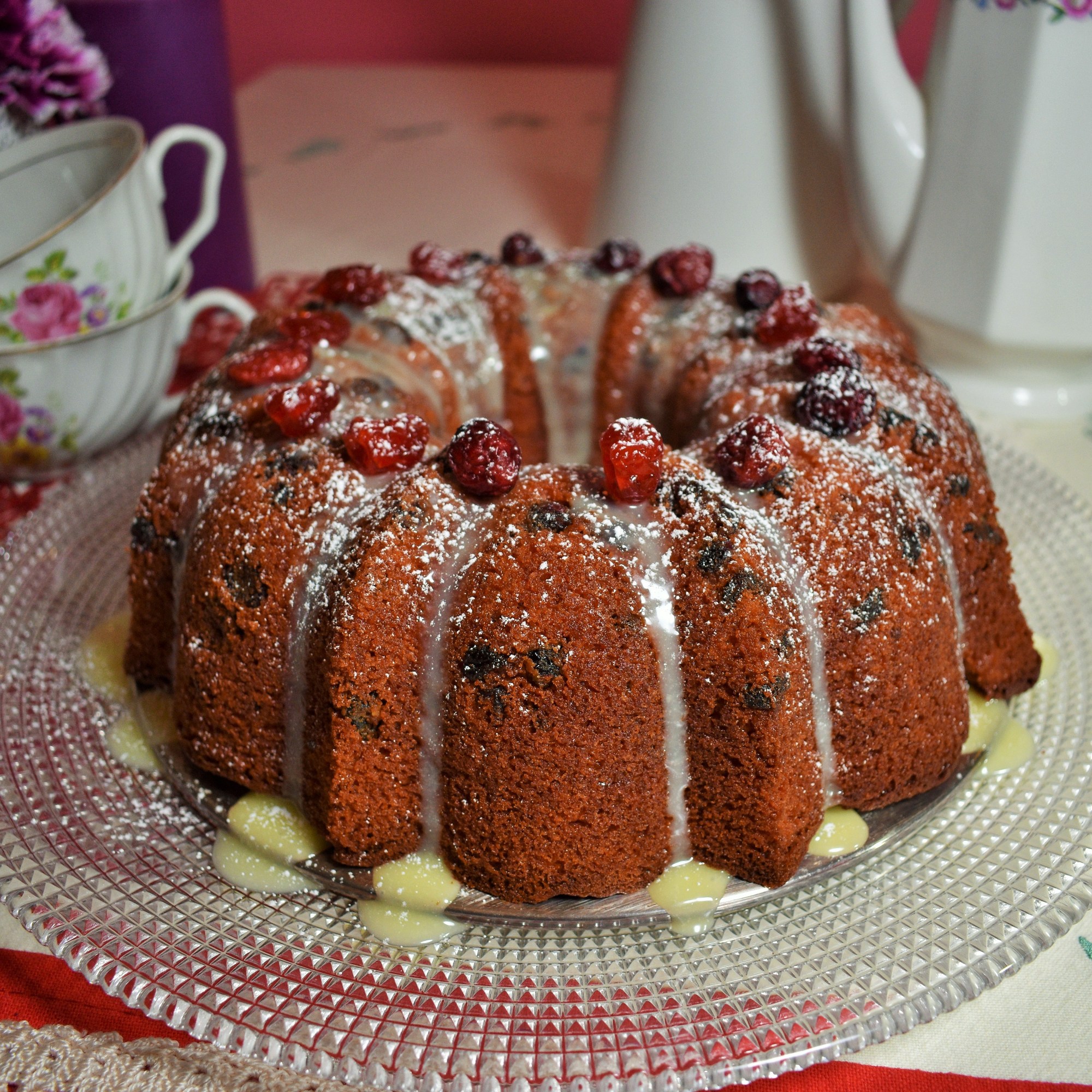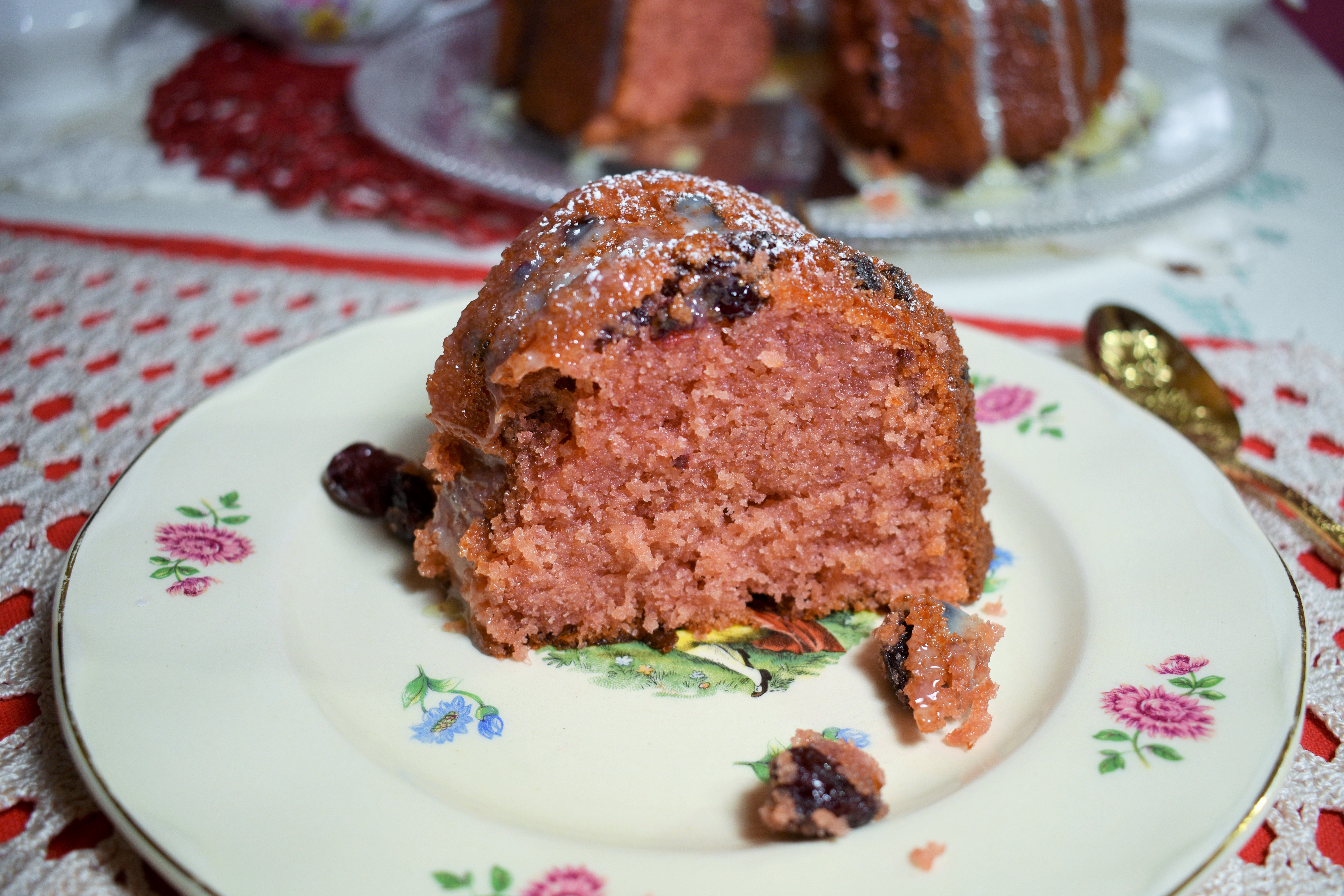 Este bundt cake nace de mi amor por los frutos rojos. Las grosellas me unen a los cuentos de la infancia. En el hemisferio sur no se conocían, ya que es un fruto originario de los bosques de la Europa occidental. Pero en mi cuento de Caperucita, la niña de la capa roja llevaba a su abuelita un frasco de «mermelada de grosellas». Así fue que nació mi intriga por estos frutos. El otro día, tenía unas cuantas ya que normalmente las uso para decorar, y pensé en convertirlas en un dulce. Y aquí están: convertidas en un delicioso bundt cake.
