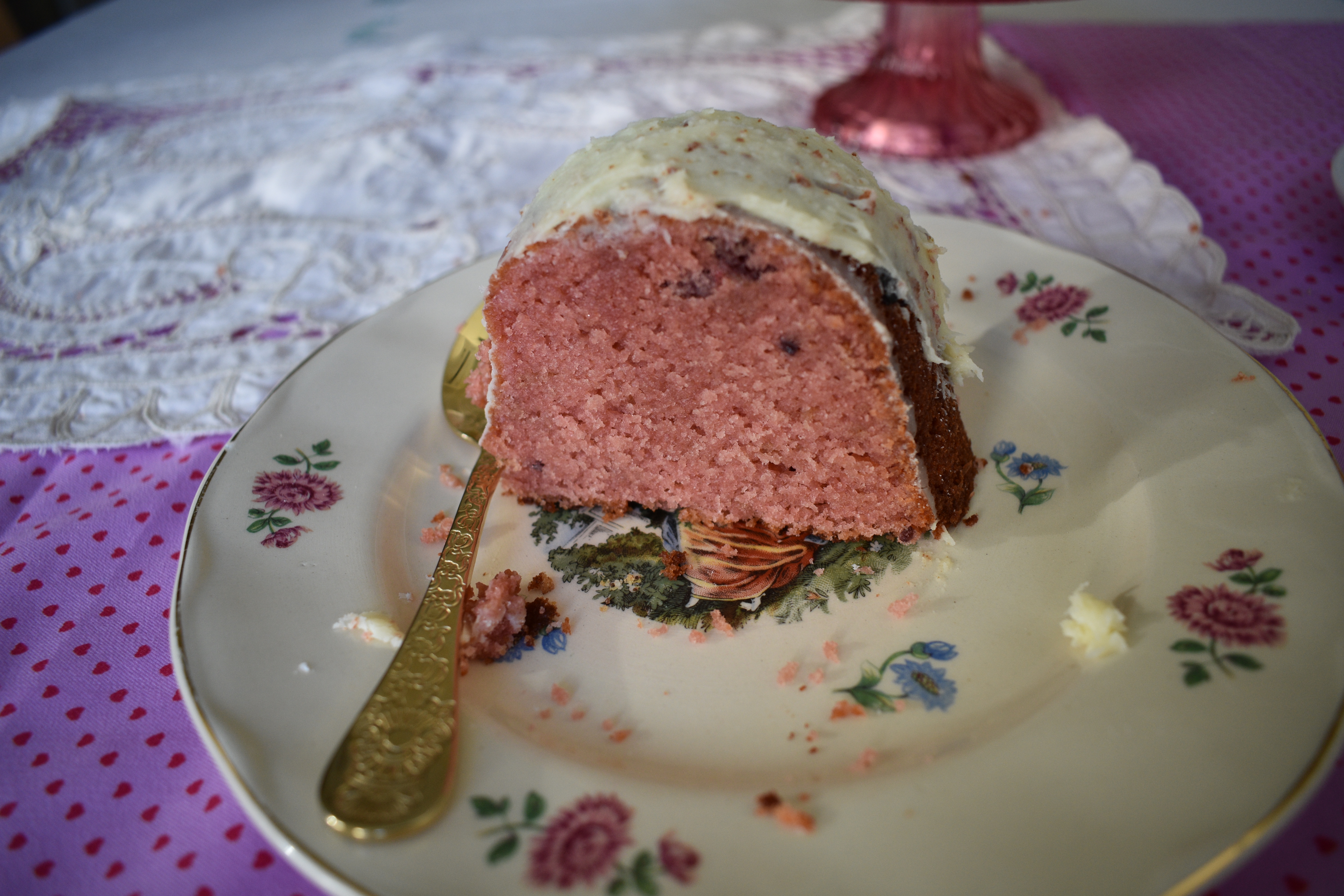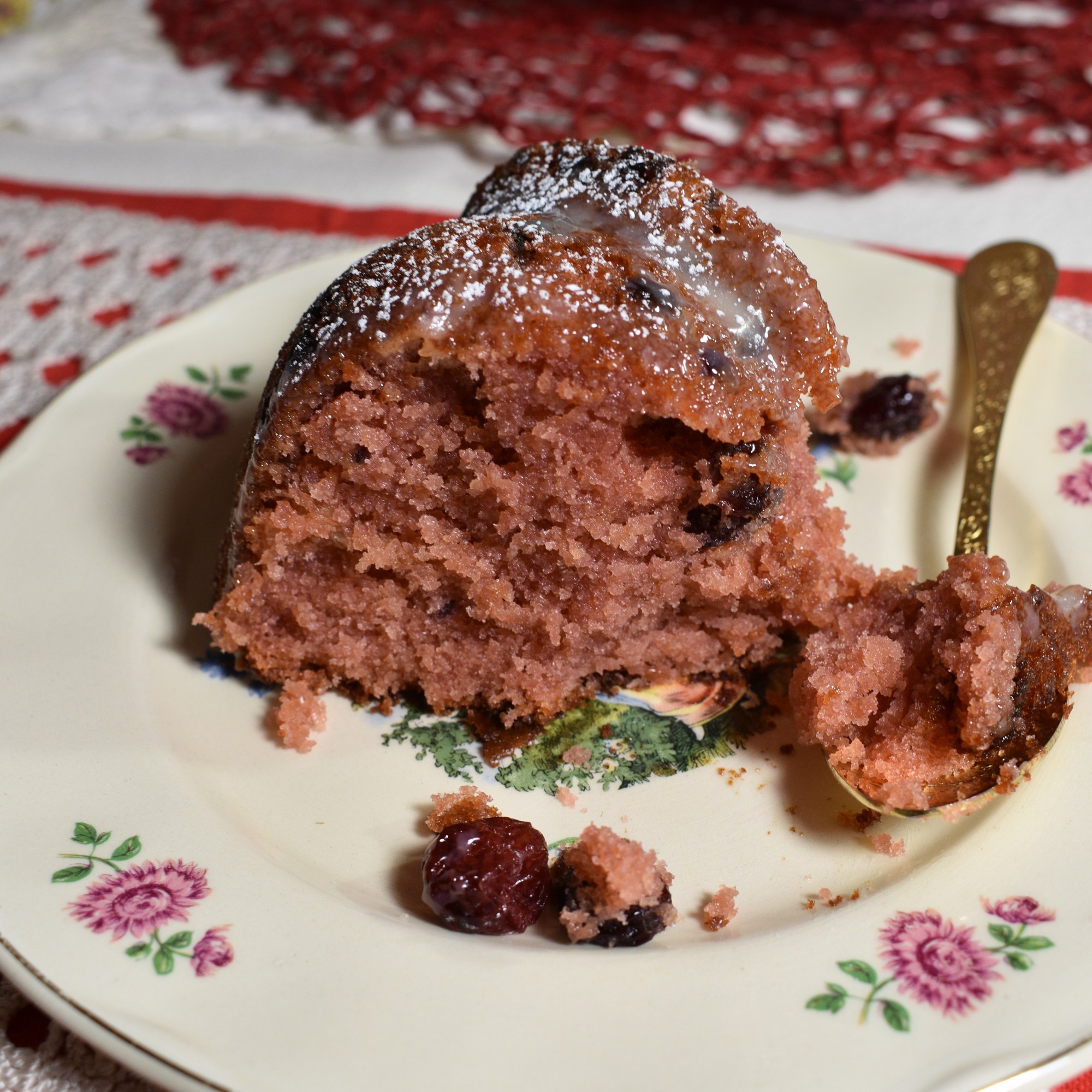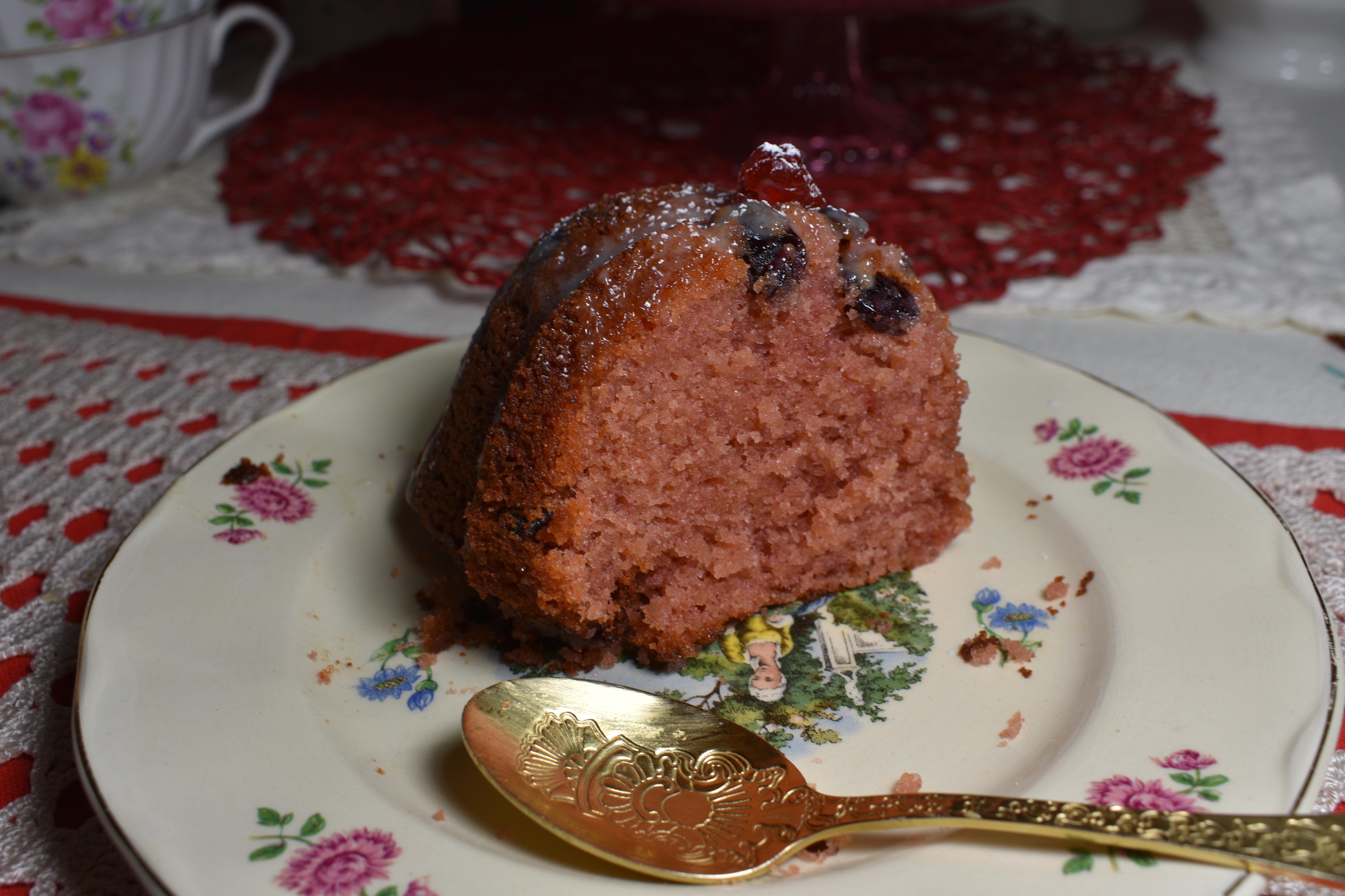 Este bundt cake nace de mi amor por los frutos rojos. Las grosellas me unen a los cuentos de la infancia. En el hemisferio sur no se conocían, ya que es un fruto originario de los bosques de la Europa occidental. Pero en mi cuento de Caperucita, la niña de la capa roja llevaba a su abuelita un frasco de «mermelada de grosellas». Así fue que nació mi intriga por estos frutos. El otro día, tenía unas cuantas ya que normalmente las uso para decorar, y pensé en convertirlas en un dulce. Y aquí están: convertidas en un delicioso bundt cake.