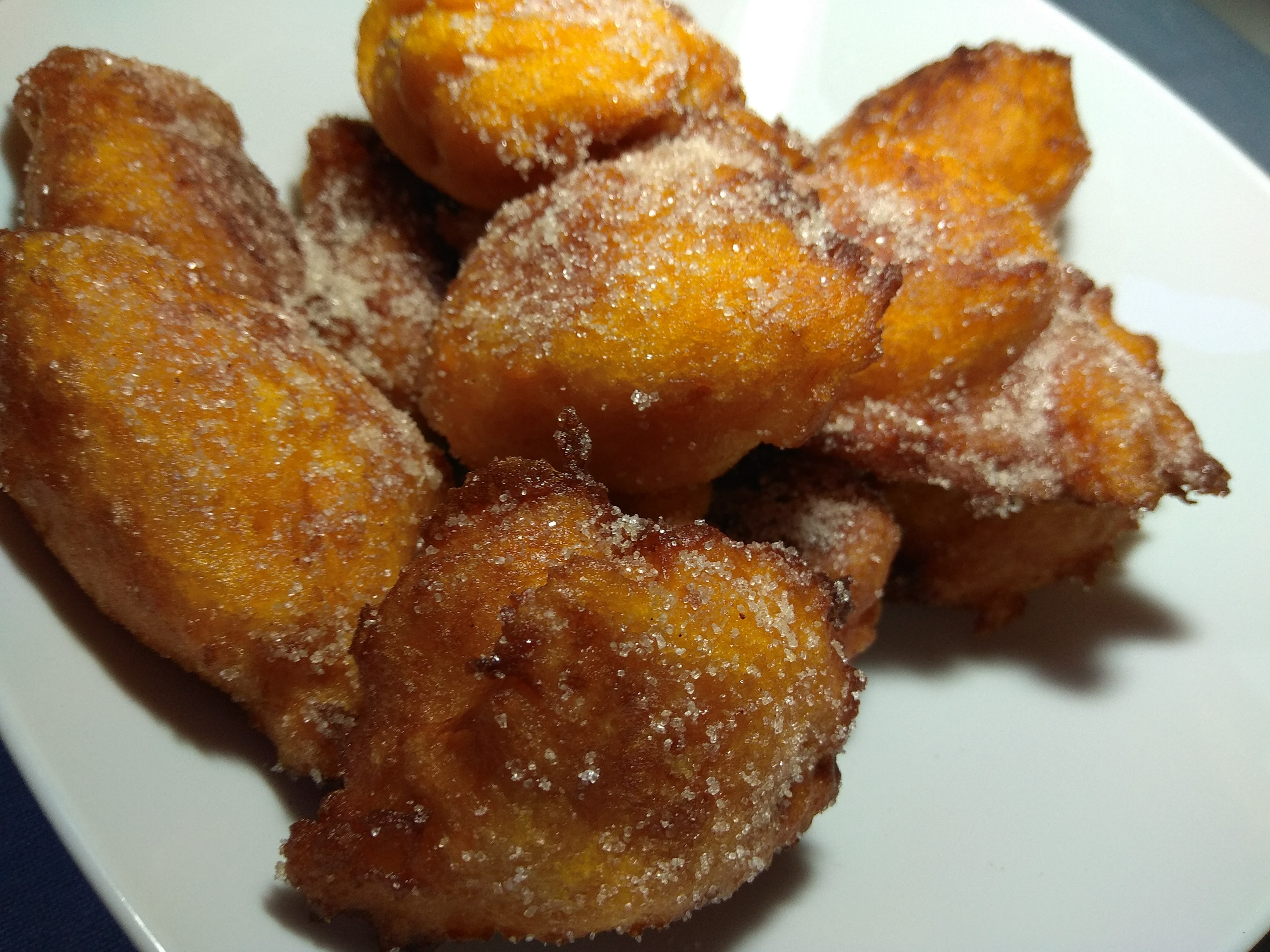 Pronto llegará Semana Santa, tiempo de buñuelos y torrijas. Estos de calabaza son un pecado que no se yo si serán apropiados. Nos invitan a la gula y eso no es muy santo que digamos. Lo bueno es que llevan calabaza, y eso los hace más sanotes. Bueno, eso no deja de ser una excusa que en el caso de mis hijos ha colado. No se han enterado que llevaba calabaza. Solo espero que no lean el blog.