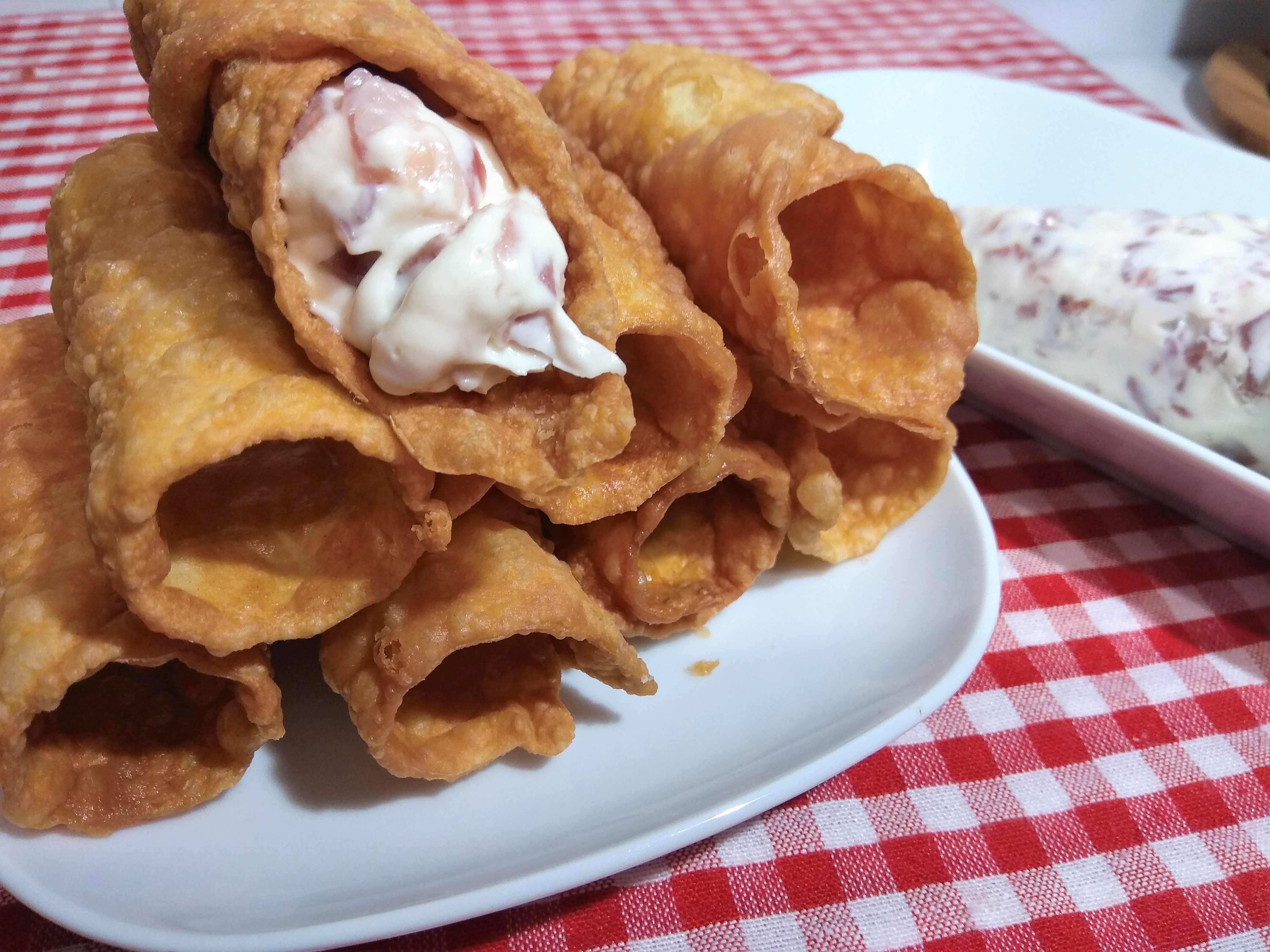 Hay un pincho muy típico de Zaragoza: el jamón batido. Yo os propongo comerlo en forma de canutillo. La masa crujiente frita combinada con el jamón batido es una combinación excelente para tapear en casa. Para ello haremos una masa Wanton, que es una masa que se usa para las empanadillas chinas y es muy versátil, ya que se puede freir, cocinar al vapor o freir. En este caso usaremos la versión con huevo y la freiremos para hacer los canutillos. El jamón batido lo puedes comer simplemente con pan tostado, pero esta opción no te defraudará. Espero que lo hagas y me cuentes.