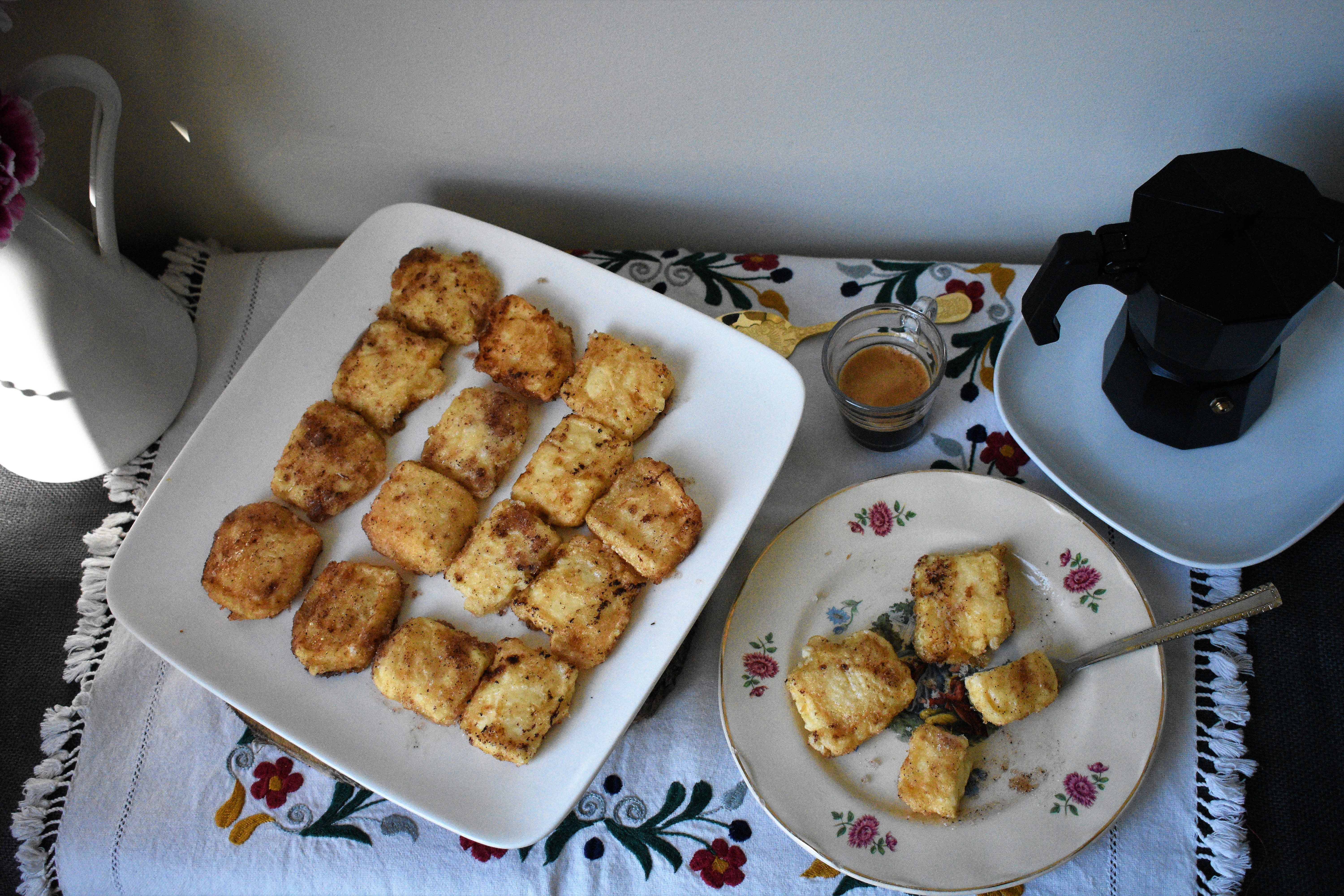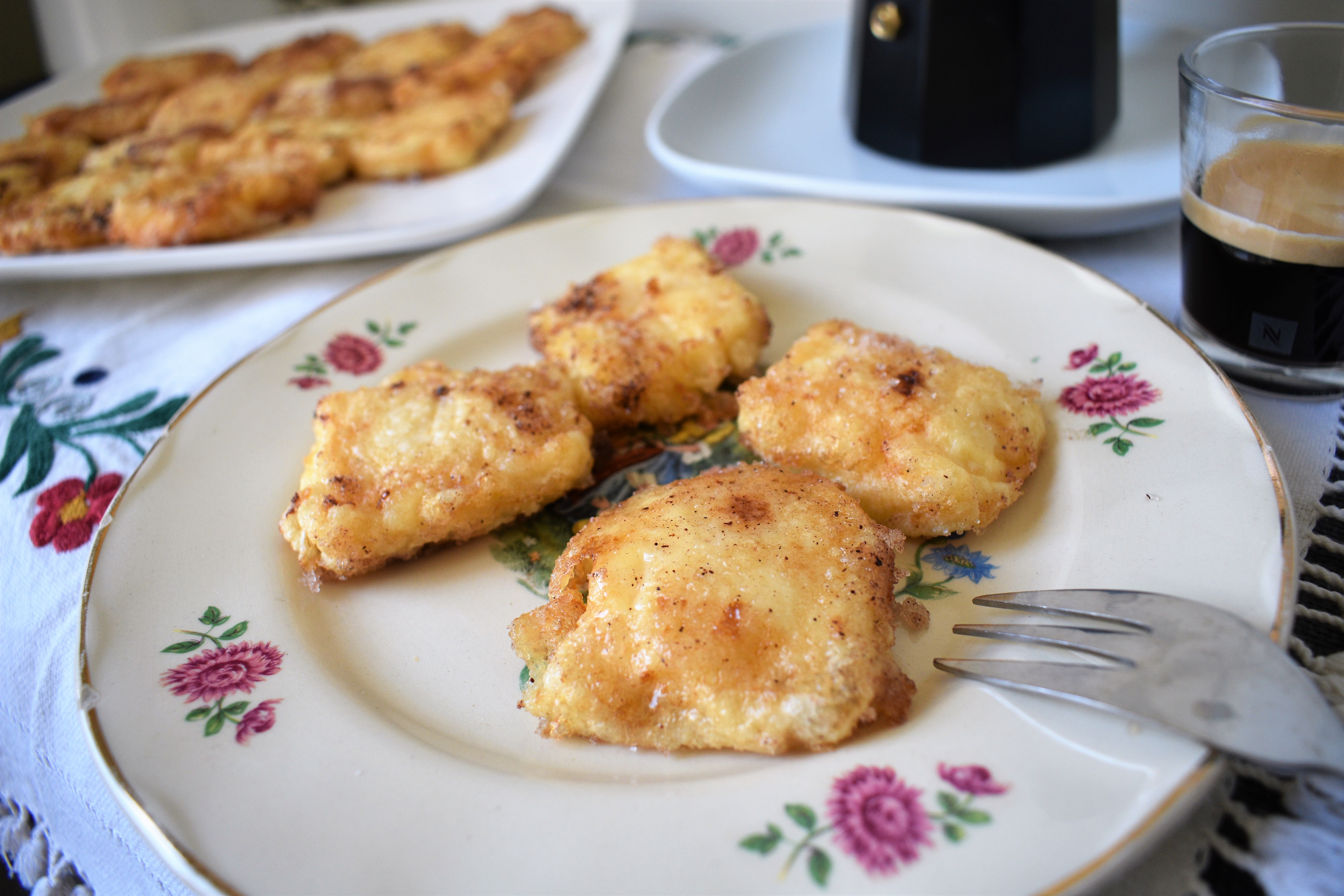 - Freímos en aceite de oliva suave o de semillas. Vuelta y vuelta. Ponemos en una fuente con papel de cocina.
