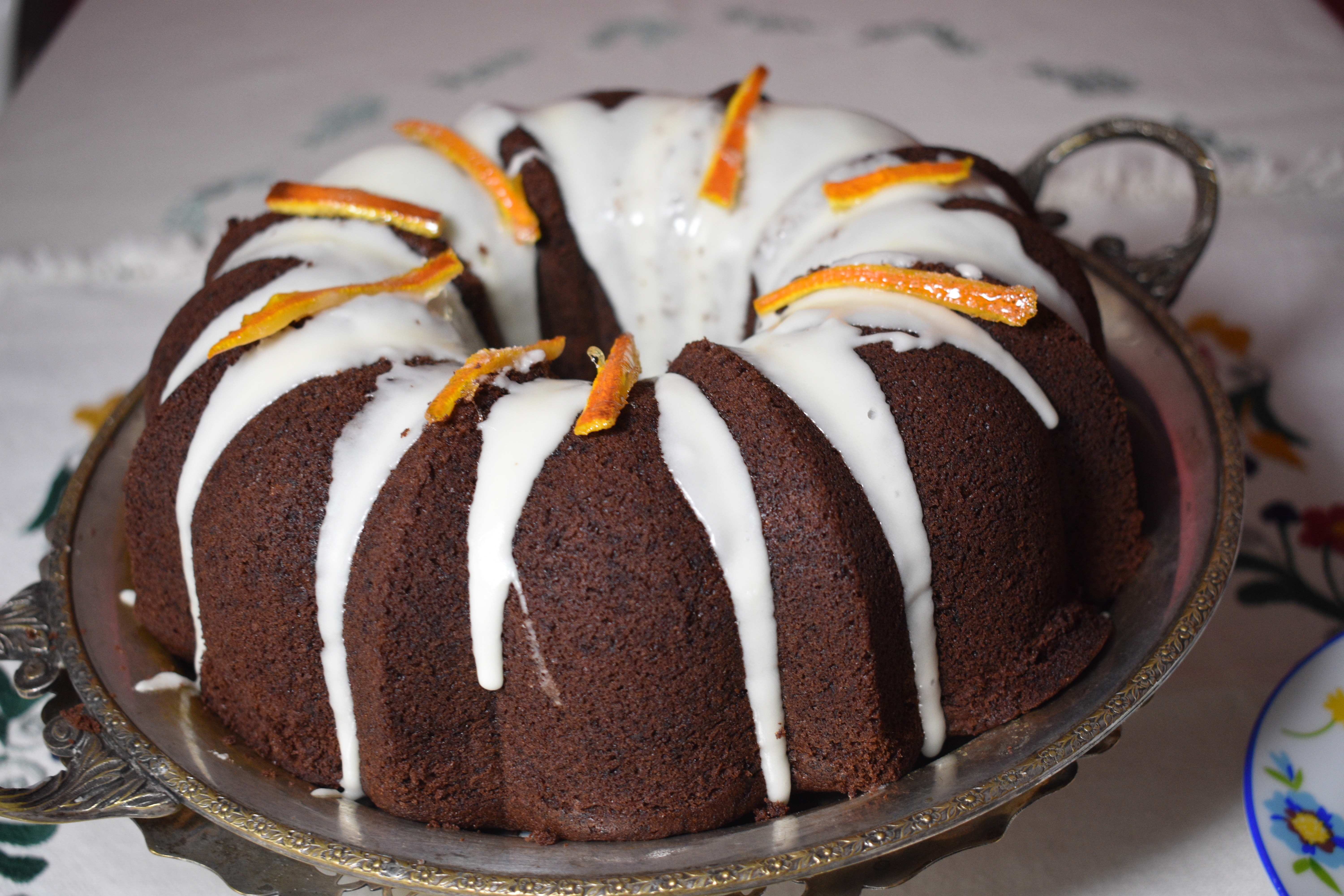 - Engrasamos bien un molde de bundt. Si es de la marca Nordic es mejor poner spray desmoldante. Ponemos la mezcla en el molde, damos unos golpecitos sobre la encimera para equilibrar bien la masa en el molde. Horneamos a 170º durante 40-45 minutos. Cuando un palillo sale seco, dejamos templar el molde y desmoldamos dejando enfriar en una rejilla.