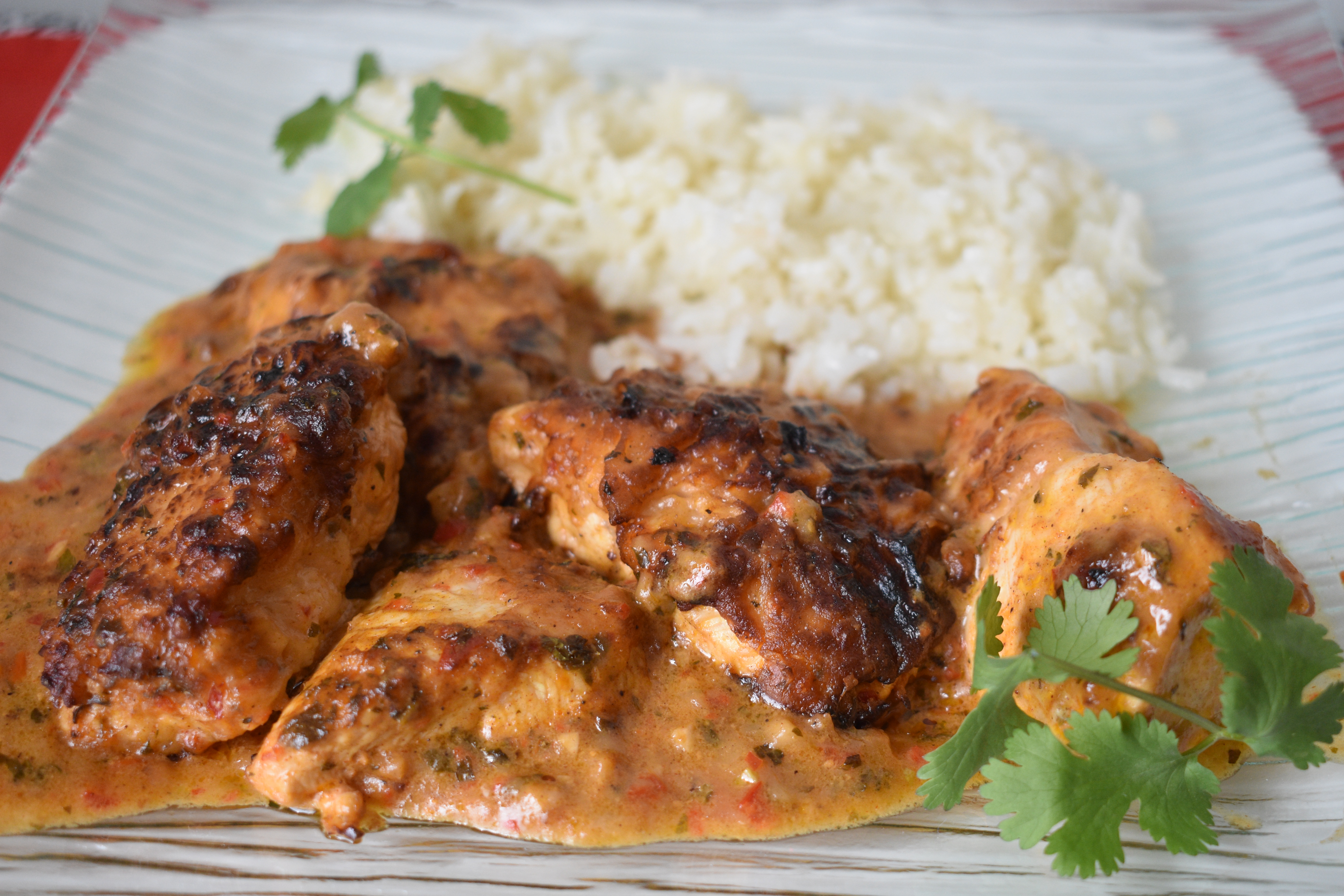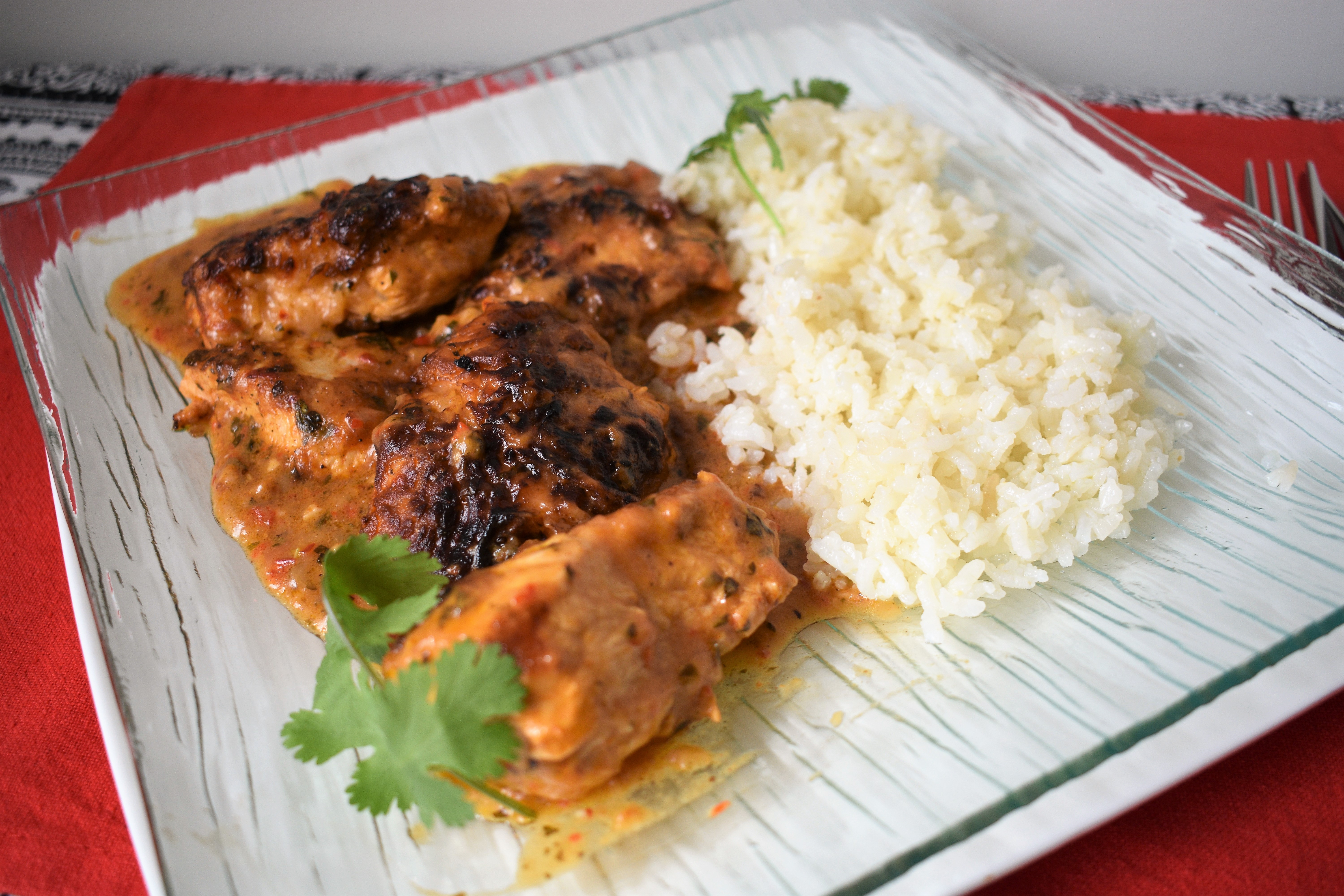 Según la Wilkipedia el pollo tandori, denominado también tandoori chicken, es un plato de pollo asado que data de la época del Imperio mogol en el sudeste de Asia y es muy popular en gran parte del este de Asia. Para mi es : la receta de mi amiga Nilu, de Sri Lanka. Son increíbles los caminos de la vida y el hecho de como se cruzan los destinos de la gente. Nilu es de esas personas que es pura paz y tranquilidad. Y con ese espíritu vamos a preparar esta receta de sabores asiáticos. Nilu me recomendó añadir colorante rojo para dar el típico color al plato. Yo he utilizado un pimiento rojo bien machacado para lograr el color de manera natural.