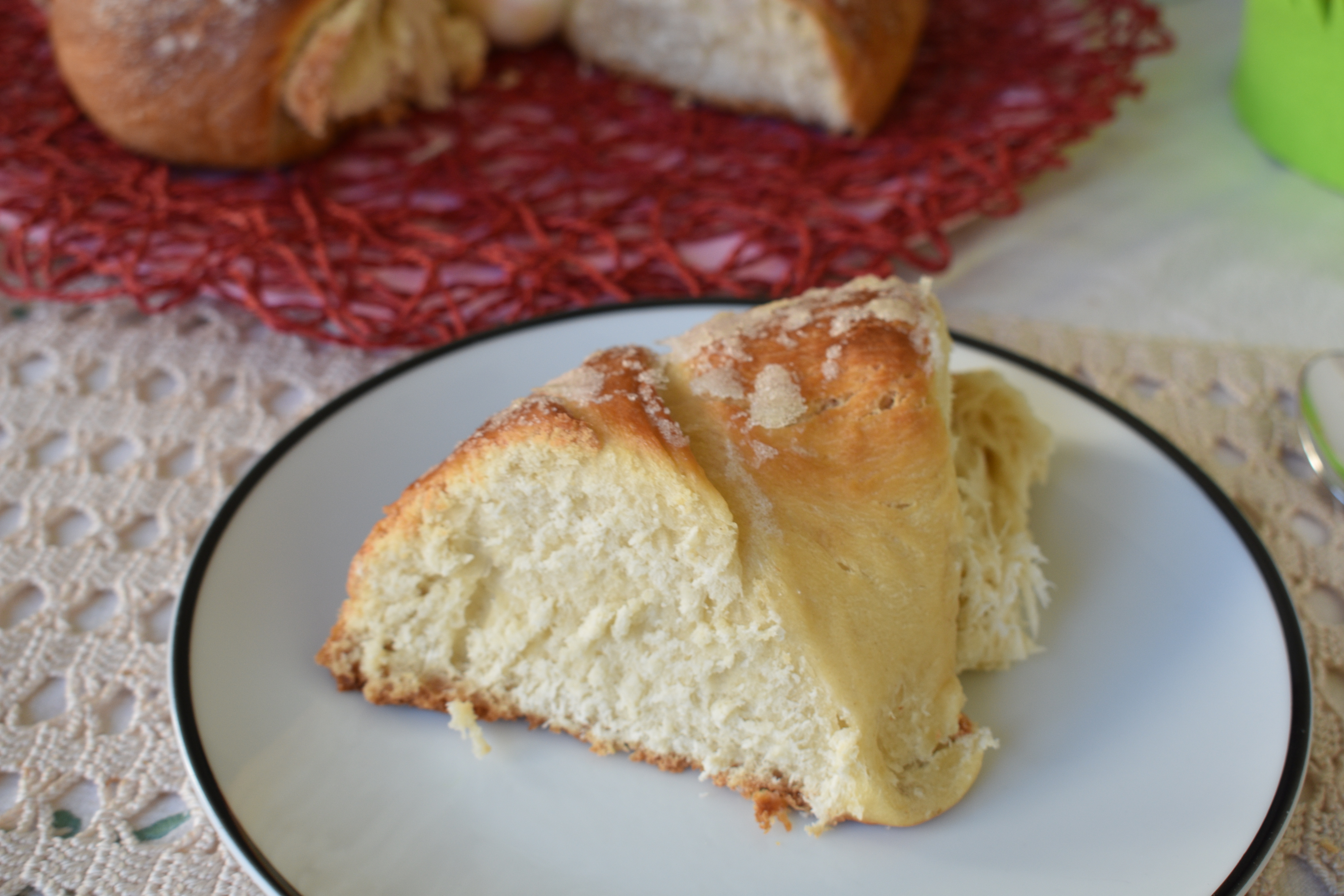 Esta receta la saqué de un libro de cocina aragonesa que encontré hace años en un mercadillo de libros. Era una rosca con muy buena pinta, y yo le he dado un toque de mona con un huevo en el medio. Una buena excusa para desayunar estos días de Semana Santa. He hecho un prefermento esponja, que es un prefermento para masas dulces y grasas.