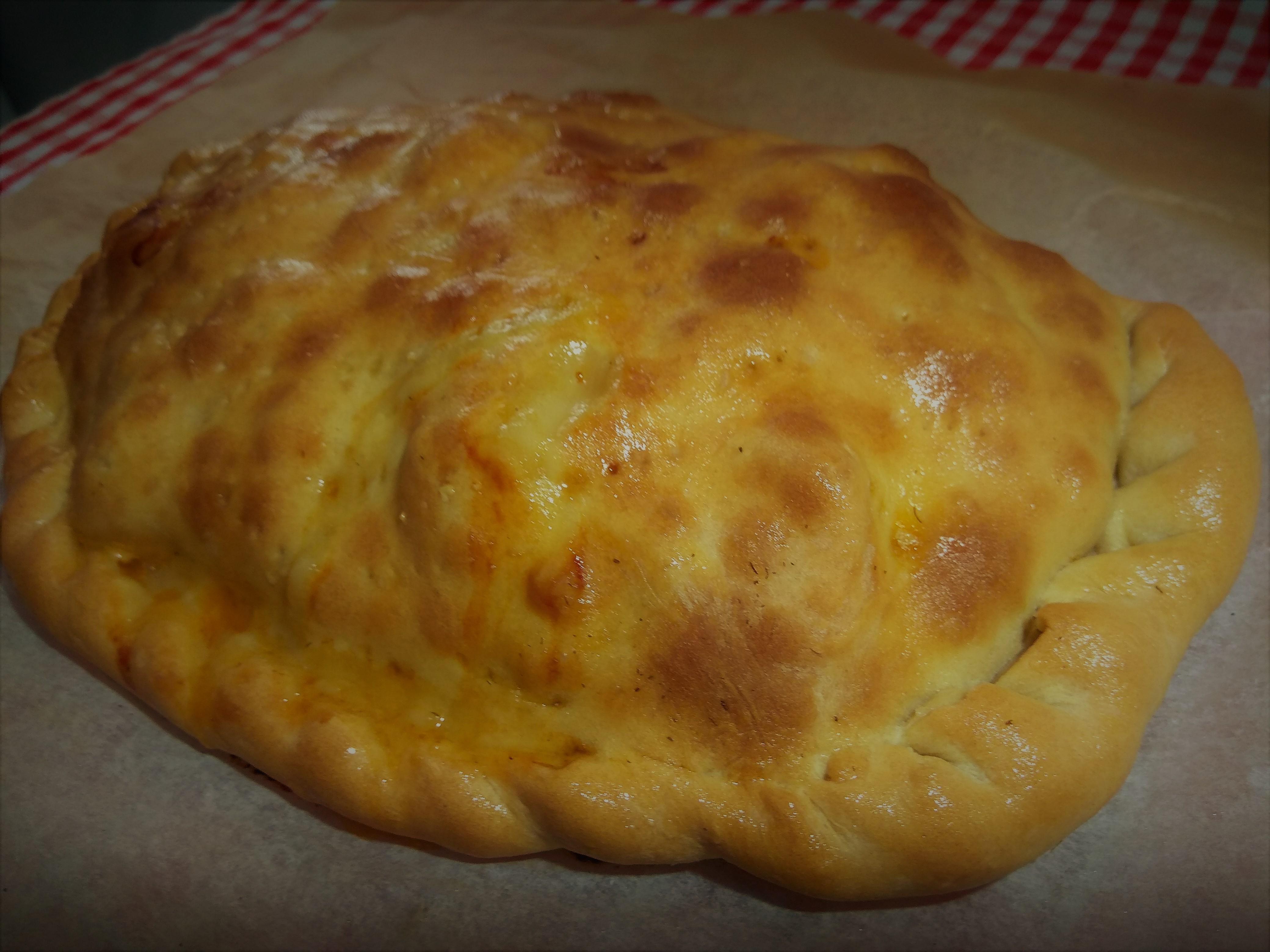 - Mojamos los bordes con agua, cerramos la masa como si fuera una empanadilla y volvemos los bordes apretando ligeramente para que quede bien sellado. Con un tenedor pinchamos la superficie en varios puntos. Pintamos con huevo.