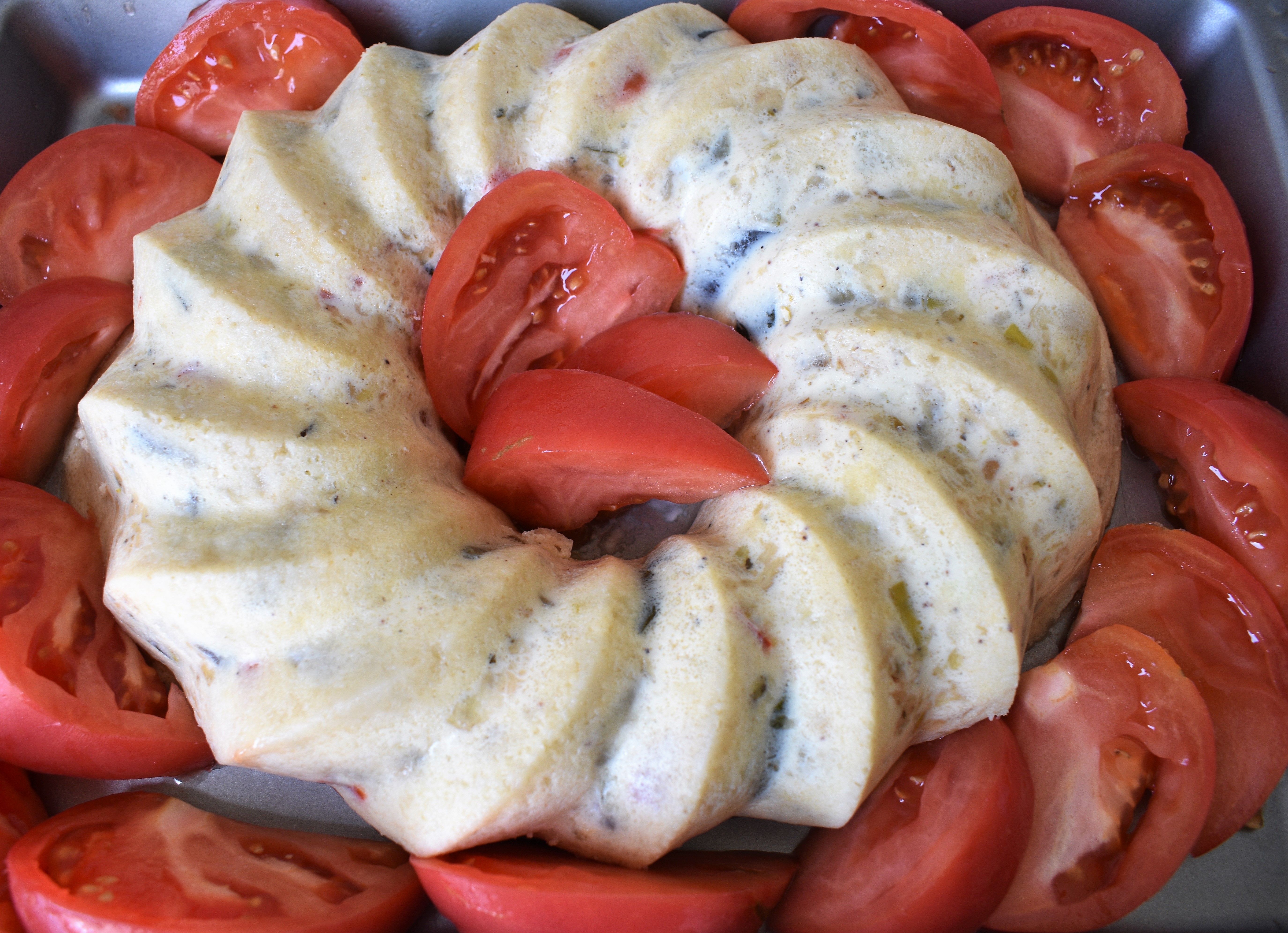 - Dejamos enfriar y desmoldamos. Para ello, separamos el pastel de las paredes del molde con un cuchillo pequeño, luego colocamos el plato encima y damos la vuelta con decisión. Llevamos a la nevera y servimos acompañado de ensalada al gusto.