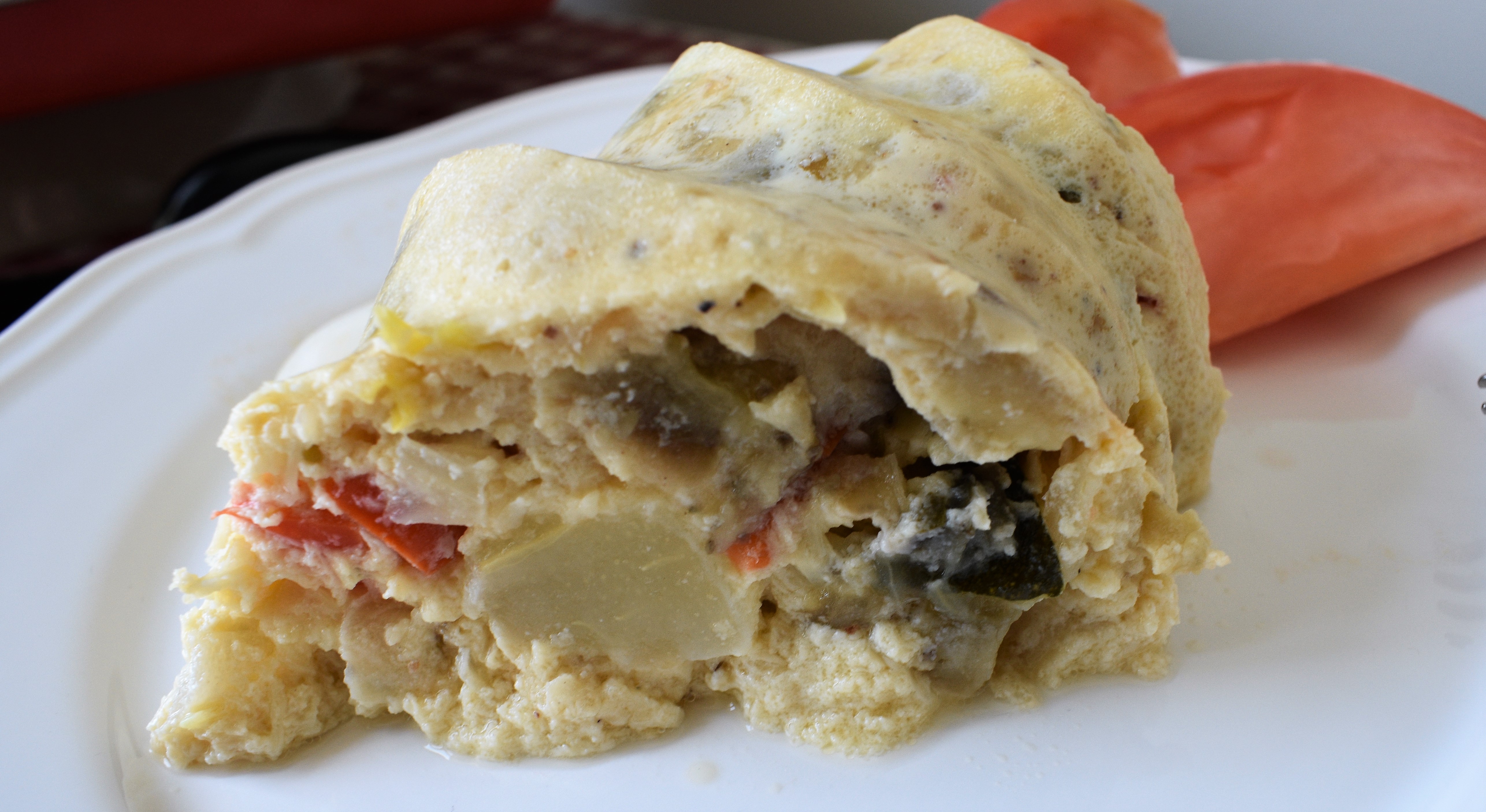 - Batimos los huevos con la nata y añadimos el queso parmesano y el queso provolone también a cubos. Sazonamos y mezclamos con las verduras cocinadas.
