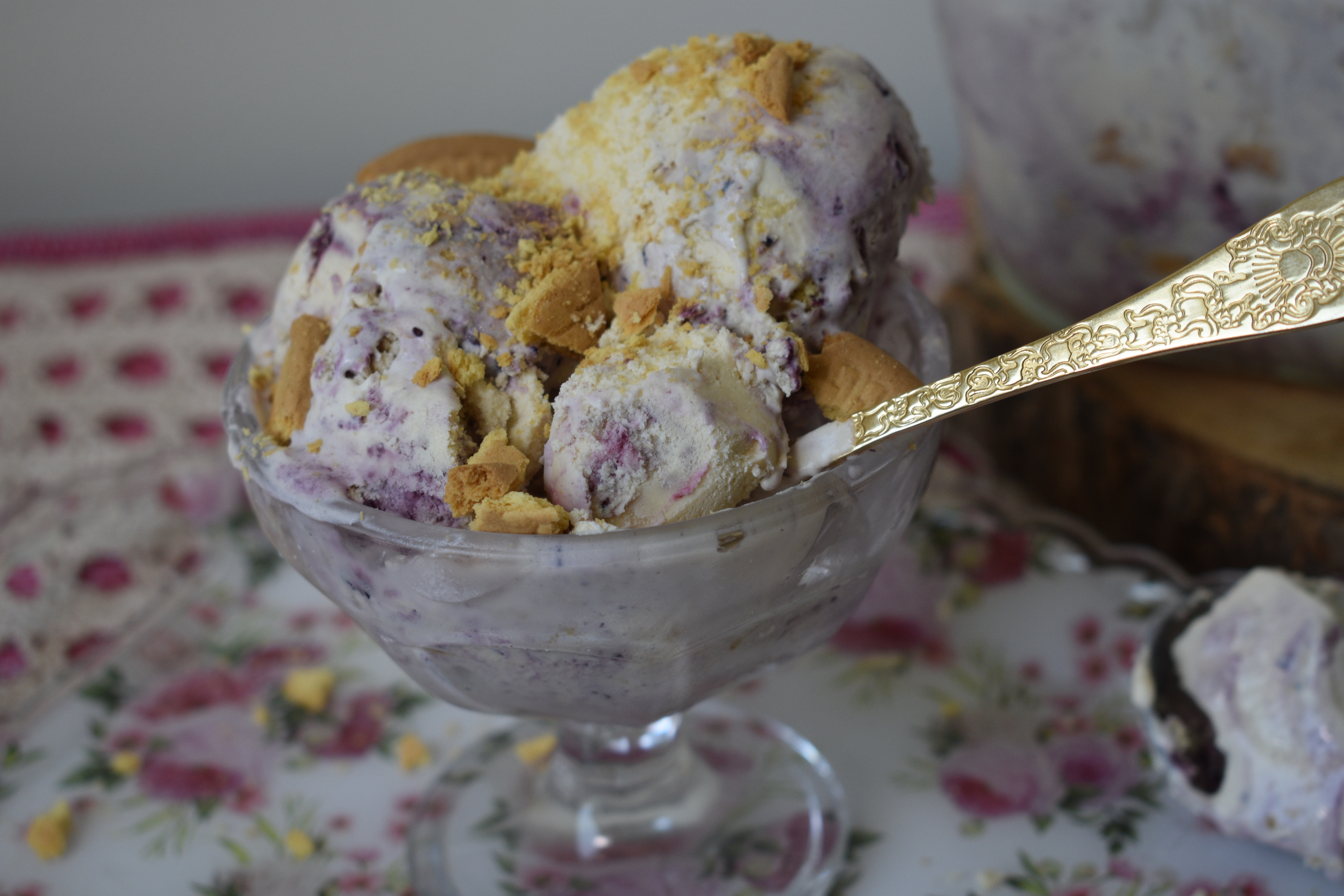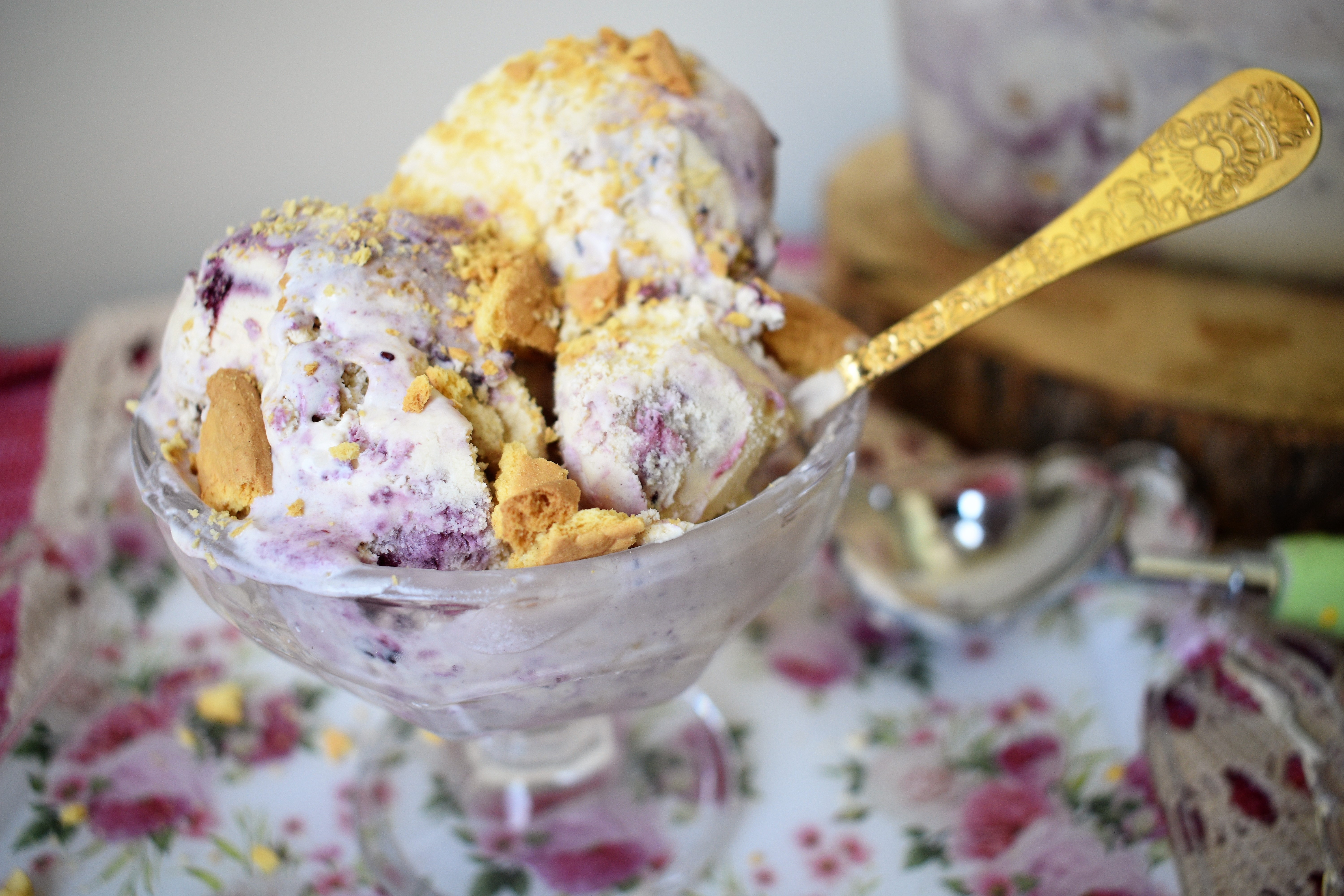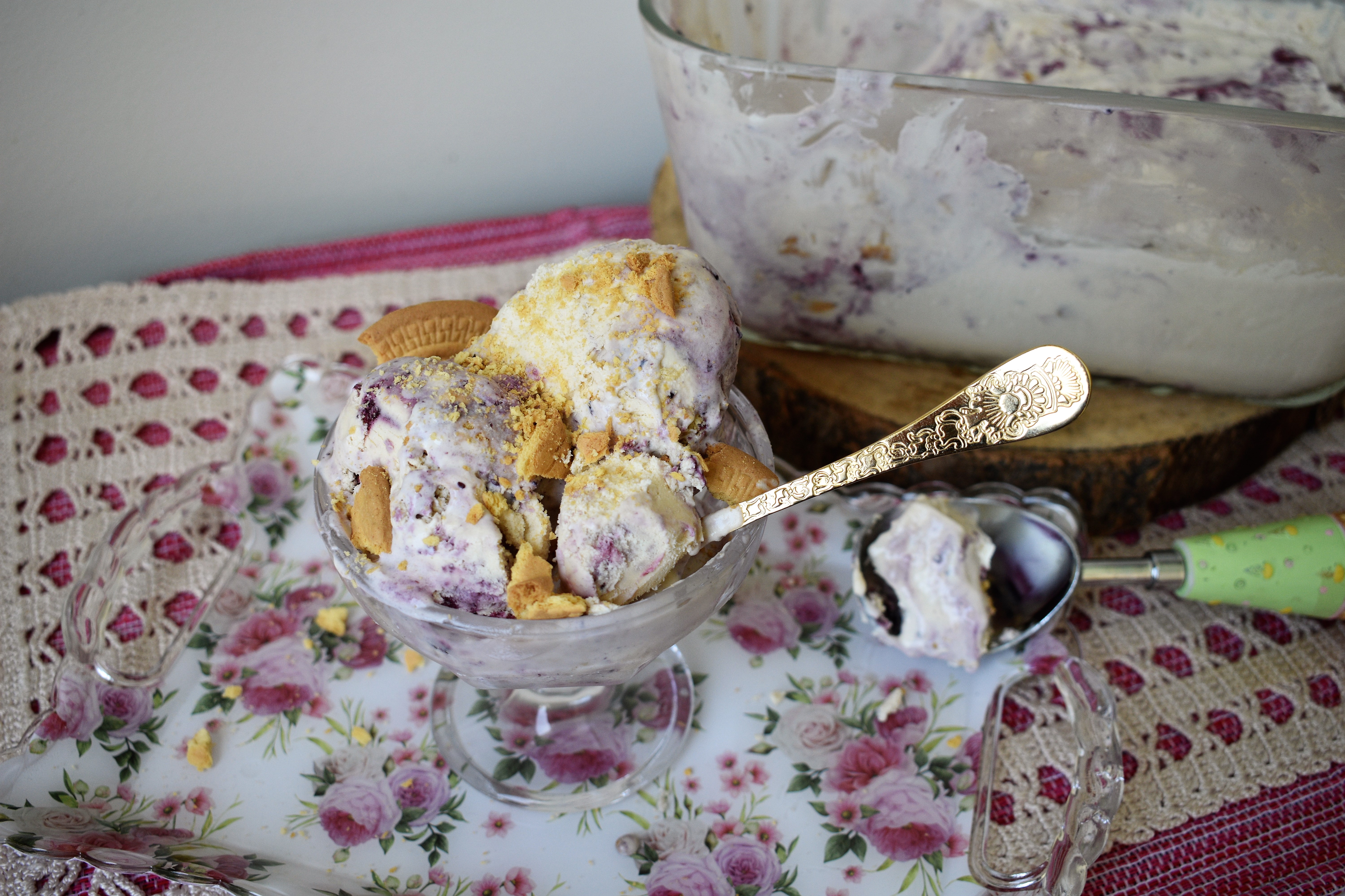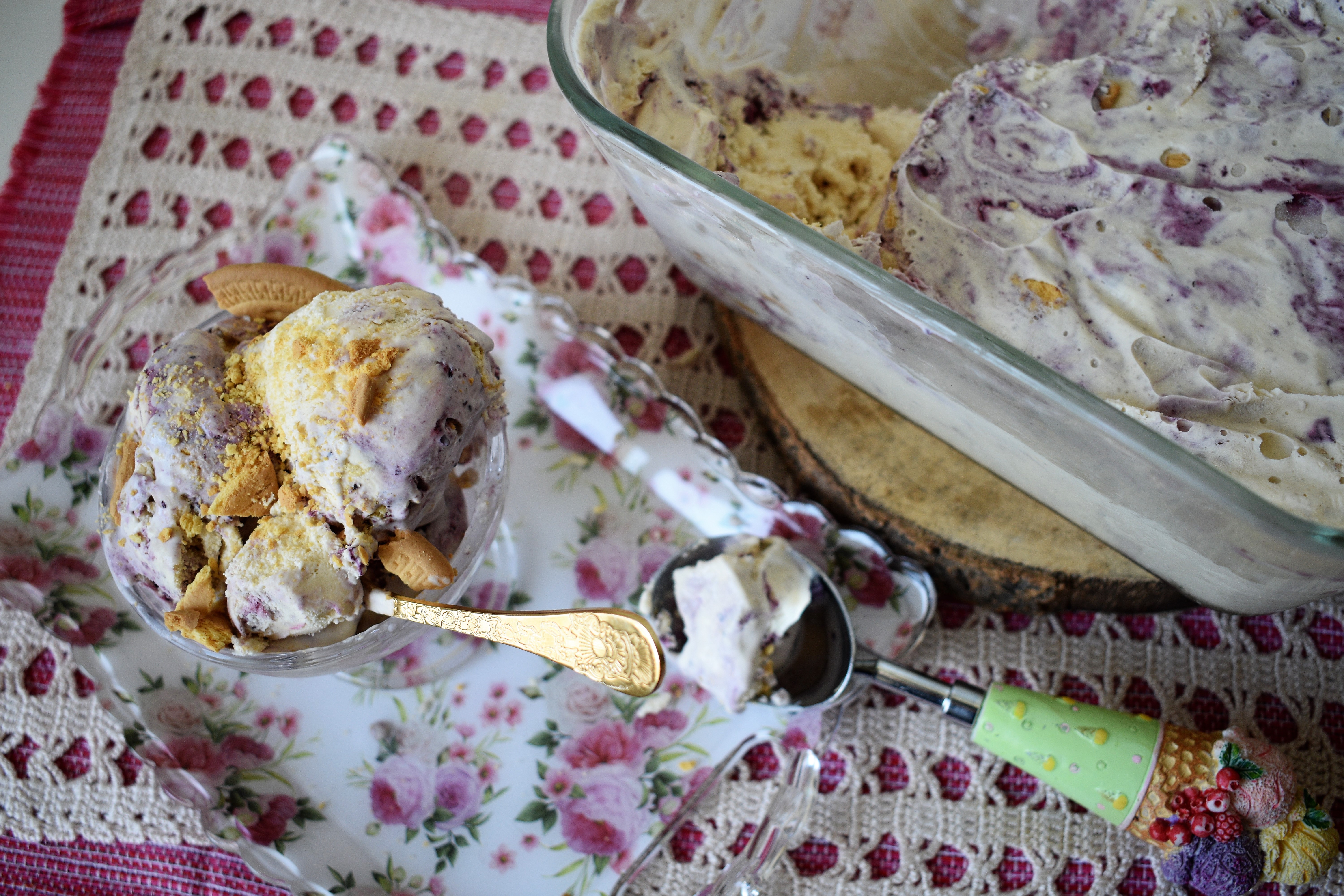 - Una vez mantecado, en un recipiente hermético vamos intercalando cucharadas de helado con cucharaditas de mermelada de arándanos, sin apenas removerlo para que la mezcla no se nos tiña del color de la mermelada. Guardamos en el congelador durante un mínimo de 6 horas. Lo sacamos del congelador 20-30 minutos antes de consumirlo.
