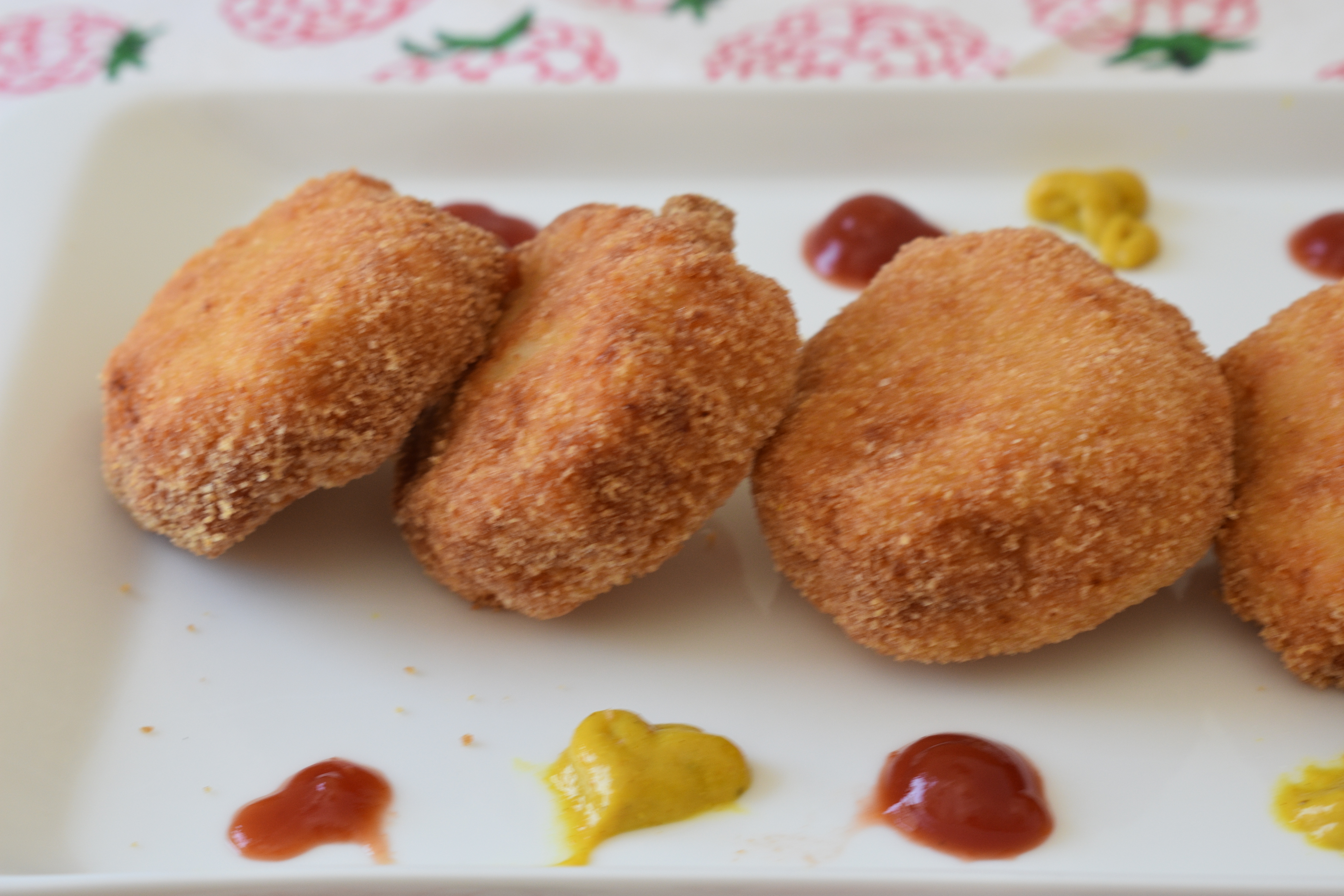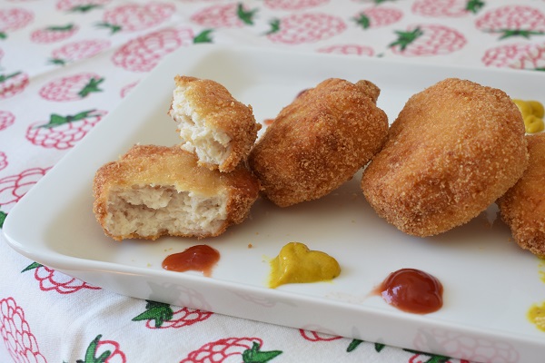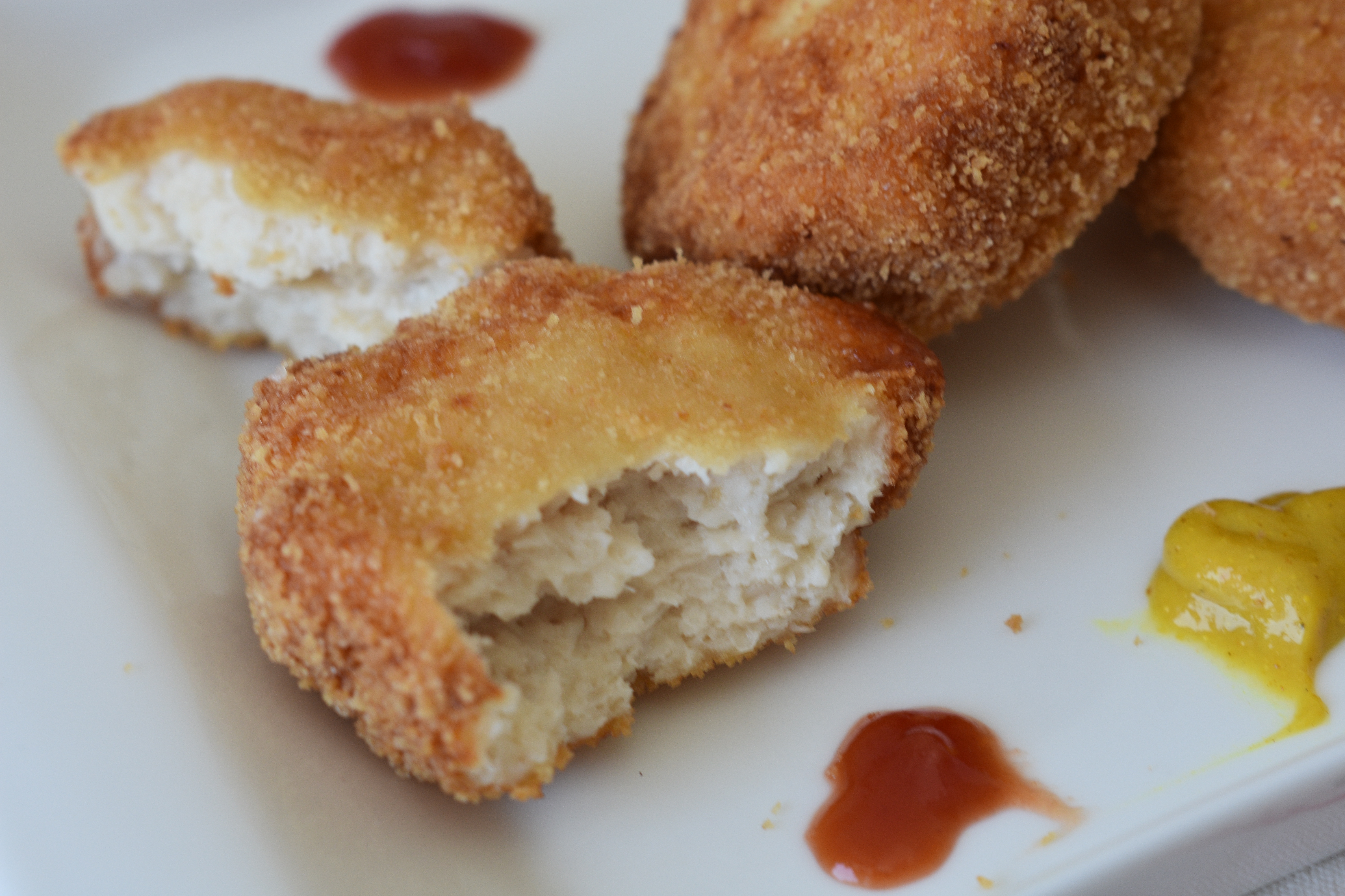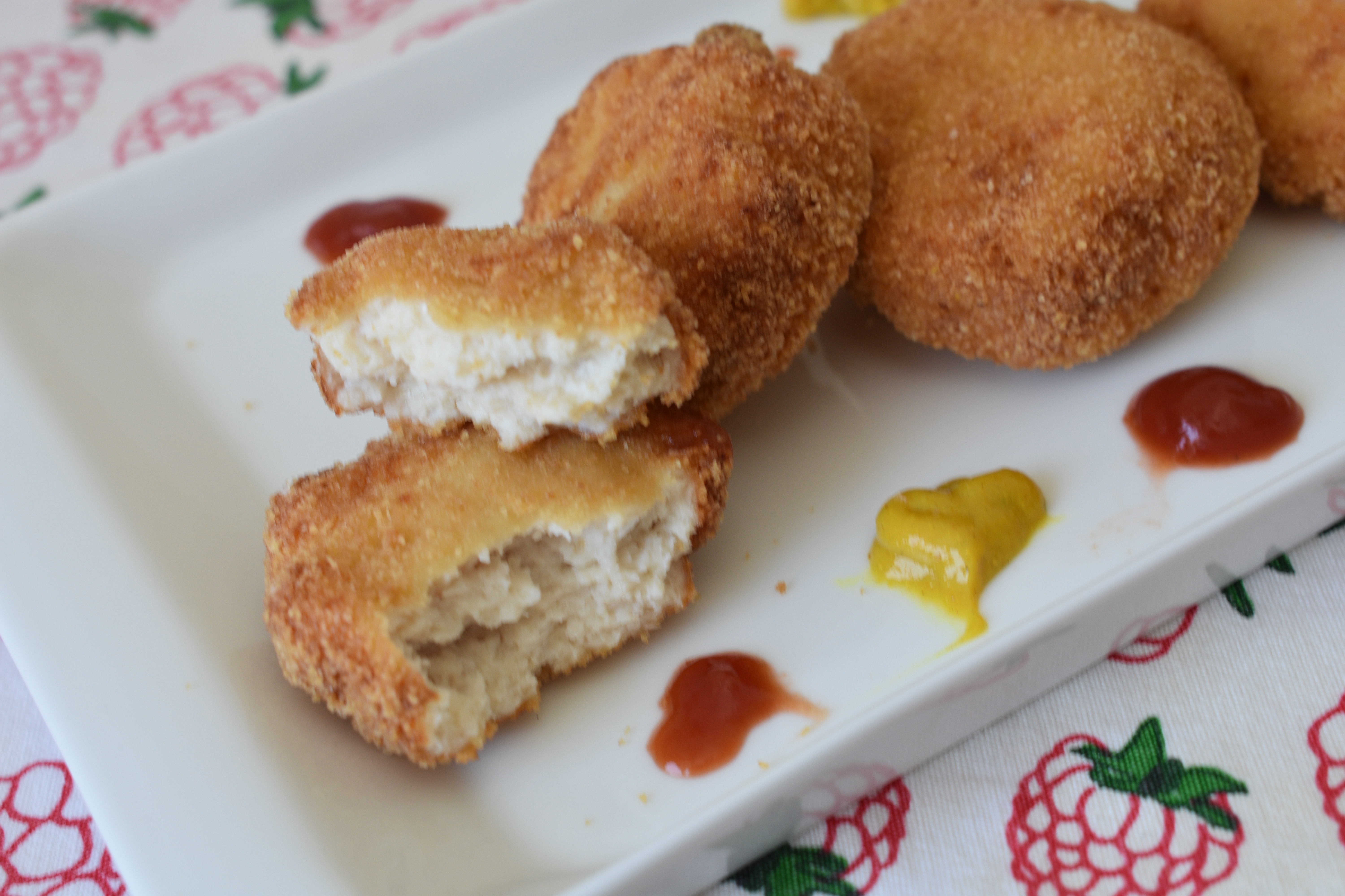 - Calentamos en una sartén honda o en una freidora el aceite a 170º C y freímos los nuggets por ambos lados hasta que estén dorados.