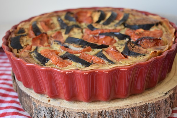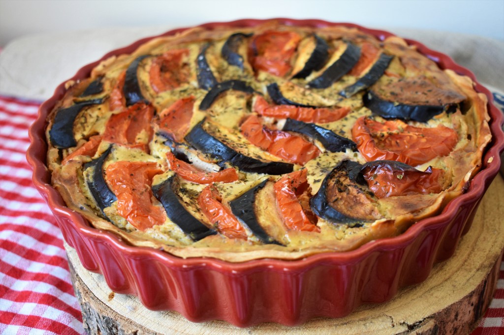 Las cenas de verano nos invitan a una copa de vino y una cena suave y ligera como esta quiche. Si a eso le sumamos que lleva verduras de temporada como el tomate y las berenjenas tenemos el éxito asegurado. Las quiches son un tipo de tarta salada derivadas de la quiche lorraine francesa, que se basa en una mezcla de huevos y crema de leche mezcladas con verduras, y a veces jamón o bacon, con la que se rellena una base de masa quebrada. Las combinaciones pueden ser muchas. Aquí os dejo esta propuesta.