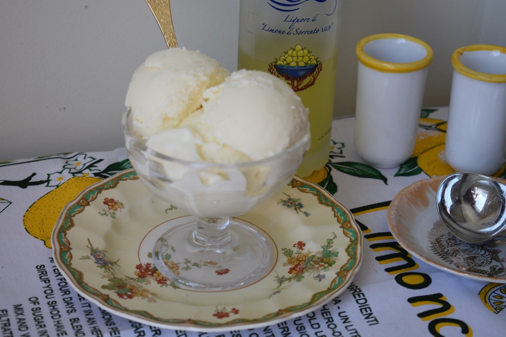Se va terminando el verano, pero aún persiste el calor. Así que nada mejor que preparar unos ricos helados. Hoy voy a escribir dos recetas como colofón para los últimos calores. Una de dulce de leche y otra de limoncello. El limoncello es un licor típico de Italia que se obtiene de la maceración de la cáscara de limón en alcohol. Es típico de la región de Campania, y se hace con limones de la costa Amalfitana. Tiene un hermoso color amarillo limón, y se consume muy frío después de las comidas como digestivo, y se usa en repostería para aromatizar masas y postres. Tenía en casa una botella que me regalaron dos queridos amigos de viaje por Italia. Así que me decidí a utilizarla en este rico postre, ideal para cualquier época del año.