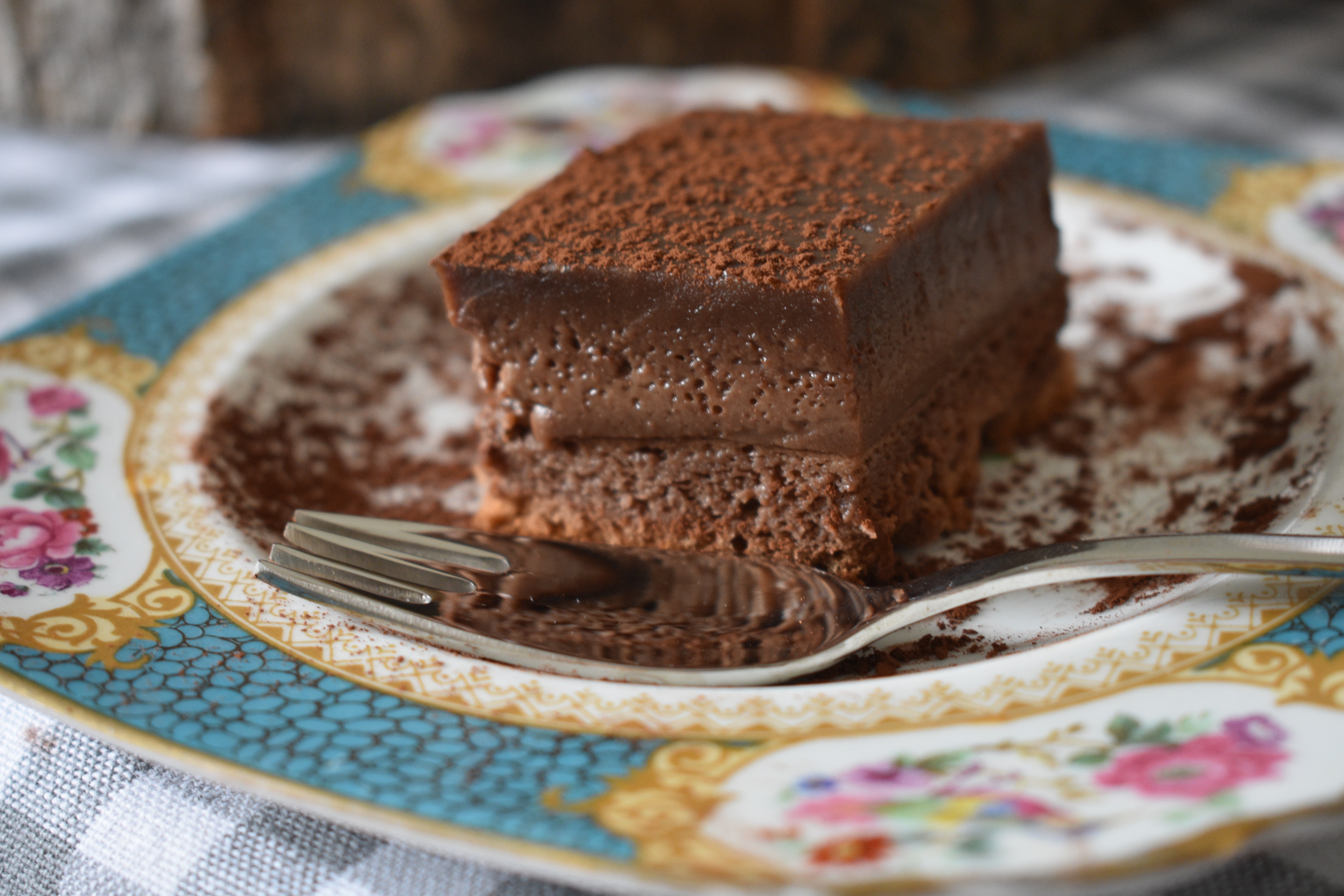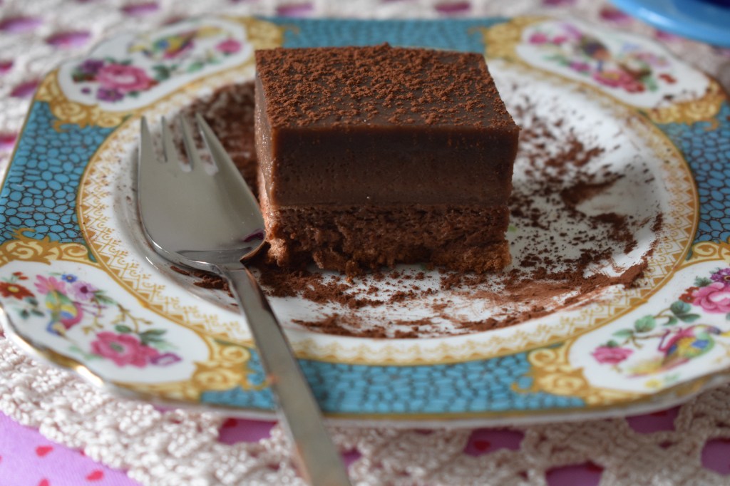 Hoy es viernes y aún no os he contado mi experiencia con el pastel mágico de chocolate. Lo hice el fin de semana pasado y éste pienso repetir. Es una mezclas de texturas suave y deliciosa, de flan y bizcocho, que te encantará. Esa división de texturas se hace sola en el horno con solo una masa, una tierna capa de bizcocho, una capa de crema de chocolate y una superficie más densa. Solo necesitas un molde cuadrado de 20x20cm, para que quede alto y se note la diferencia. Si tienes de 18x18cm mejor. Si usáis un molde más grande os quedará una tarta muy rica pero no se distinguirán las capas. Vamos a la receta y te lo explico.