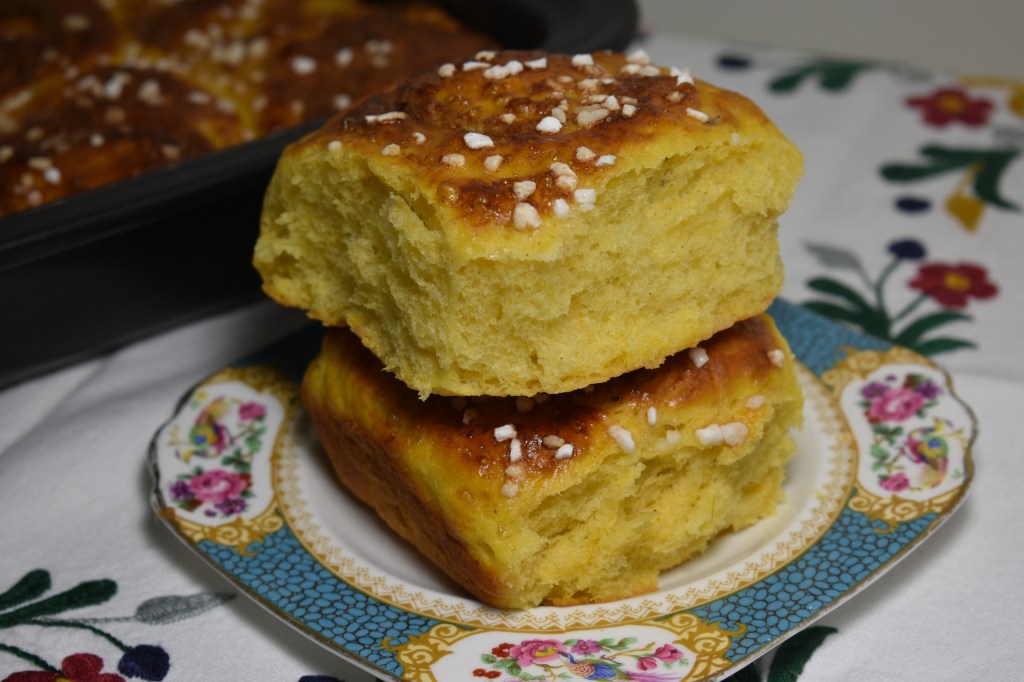 - Tapamos y dejamos reposar 30 minutos, hasta que doblen su tamaño. Pintamos con huevo batido y nata y espolvoremos con azúcar en grano.