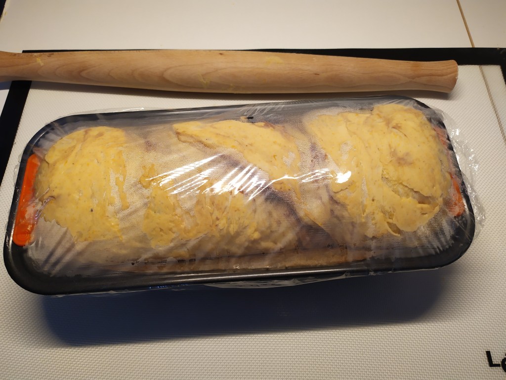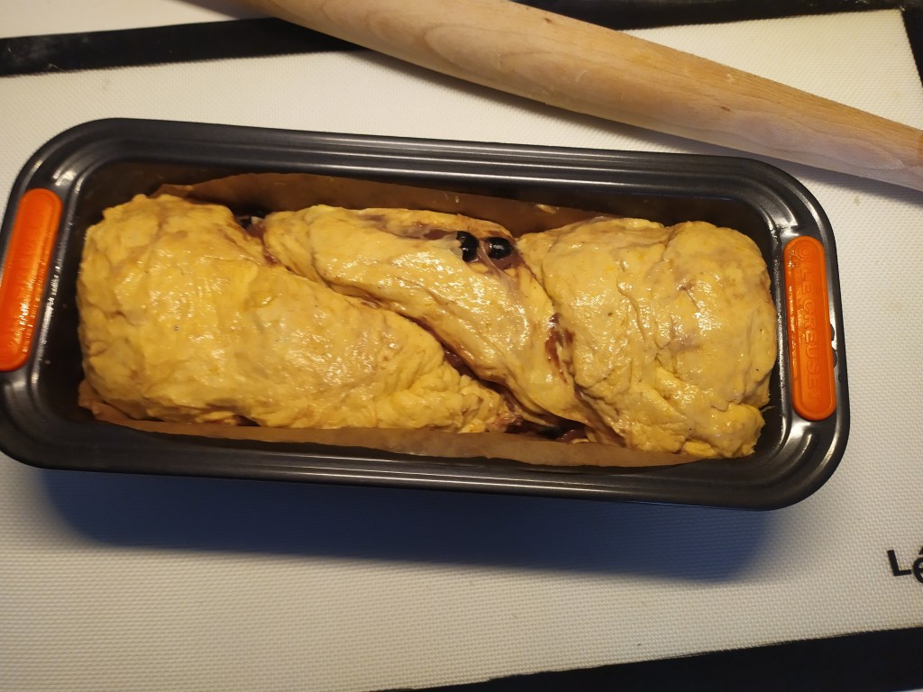 - Ponemos con cuidado en un molde engrasado y cubierto con papel de 25x12x8 de alto, cubrimos y dejamos leudar al menos una hora, hasta que doble.