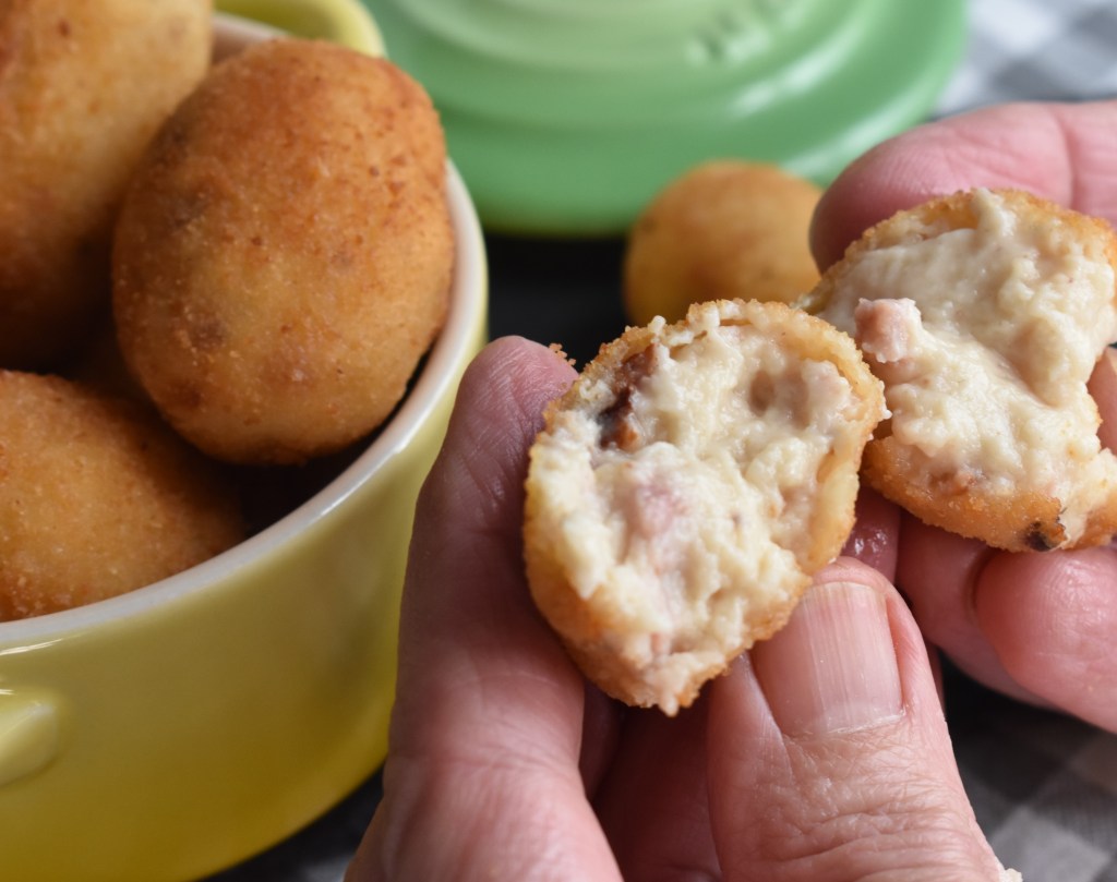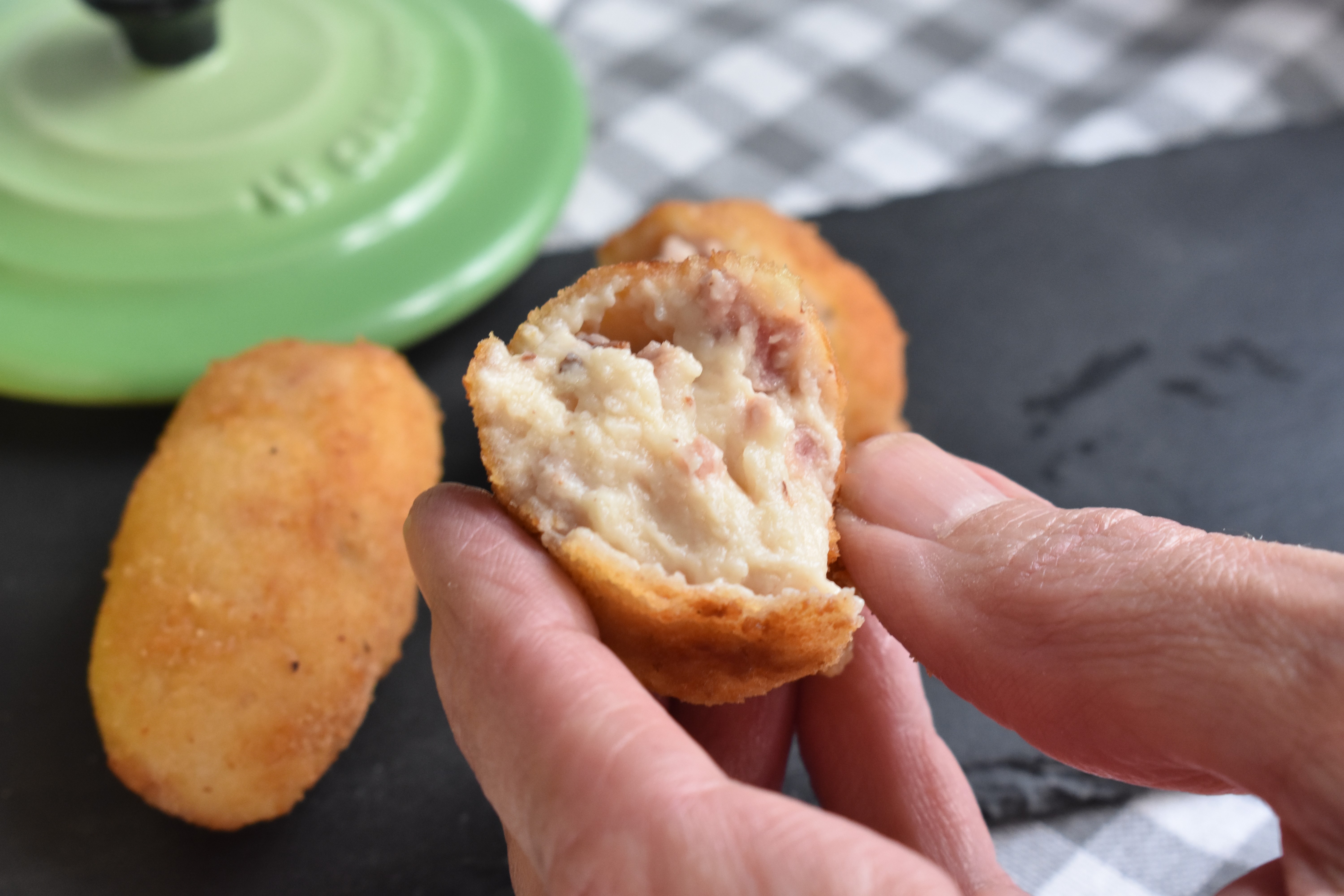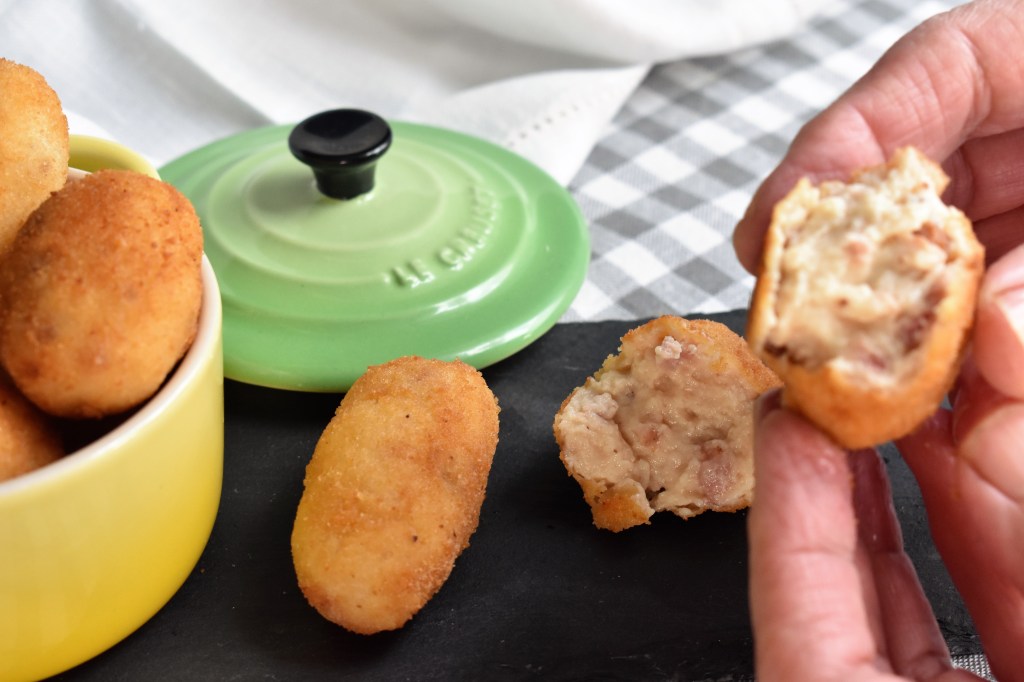 - Cuando la masa está fría, nos untamos levemente las manos con aceite y cortamos y moldeamos las croquetas.