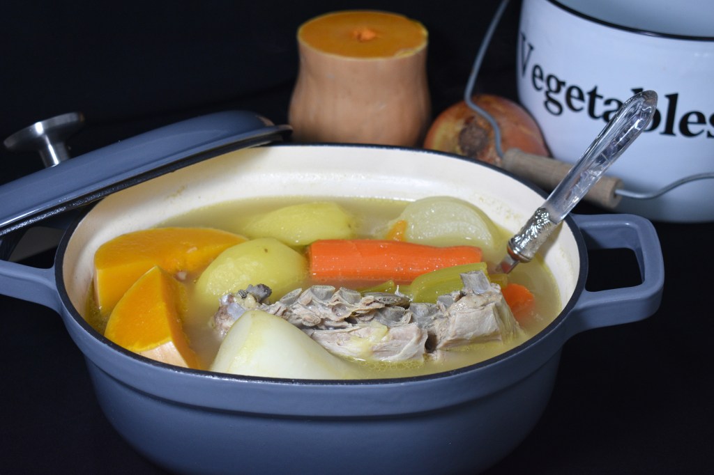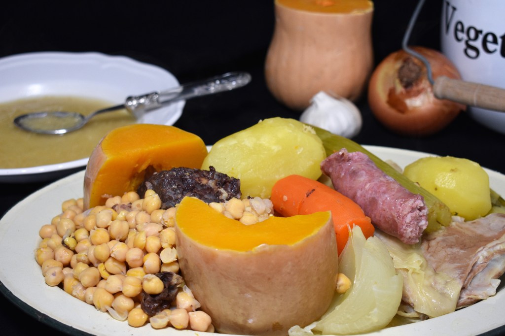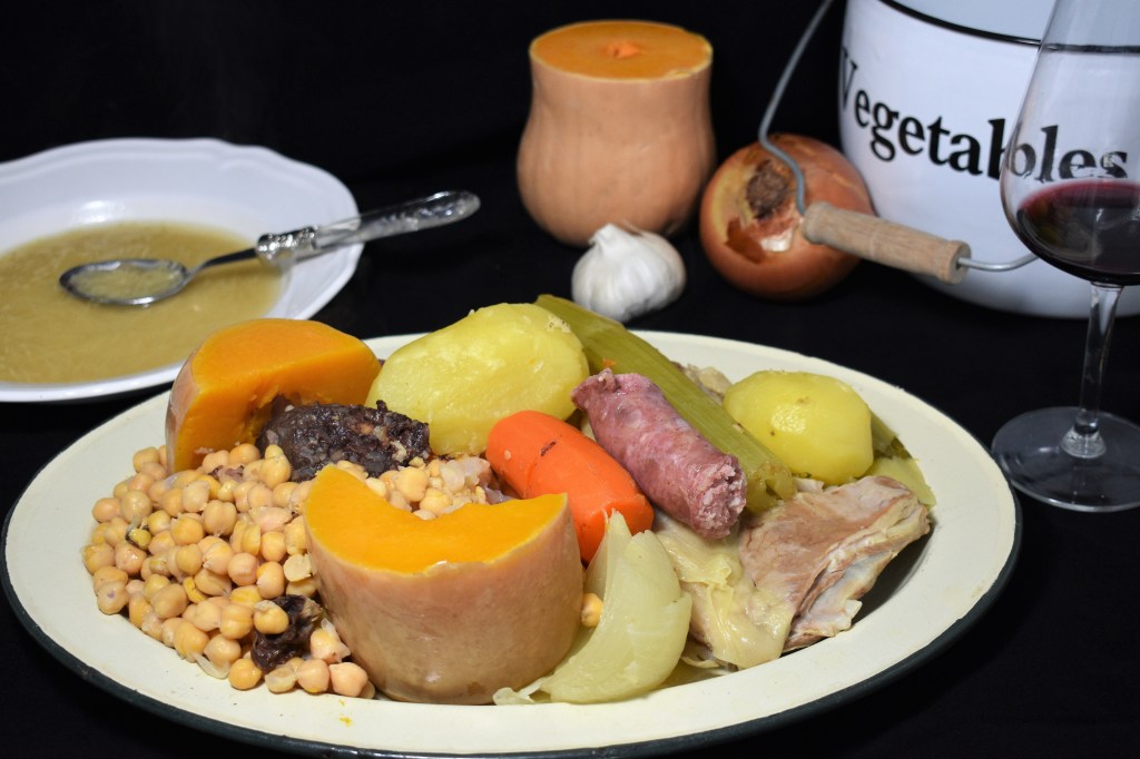 Este plato es un clásico de la cocina uruguaya, que yo he versionado adaptándolo a la cocina española. El puchero criollo tiene casi todos los elementos del cocido madrileño, o de la ecudilla i carn d olla catalana ( diferentes carnes, verduras y legumbres) y los adapta a la cocina uruguaya con productos americanos, como papas, boniatos, zapallo, porotos y choclos. En mi caso, he prescindido con pena de los choclos ya que no encontré en el mercado y he sustituido los porotos por garbanzos. Este plato es un volver a la infancia, en casa nunca faltaba. Recuerdo a mi madre prepararlo en la cocina a leña durante toda la mañana. Luego nos servía la sopa con fideos finos que en Uruguay le llamamos «cabello de ángel», y aparte la carne y las verduras. Bueno he aquí mi versión.