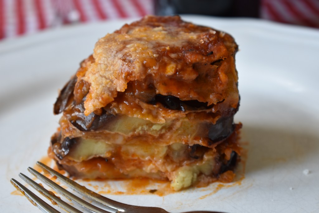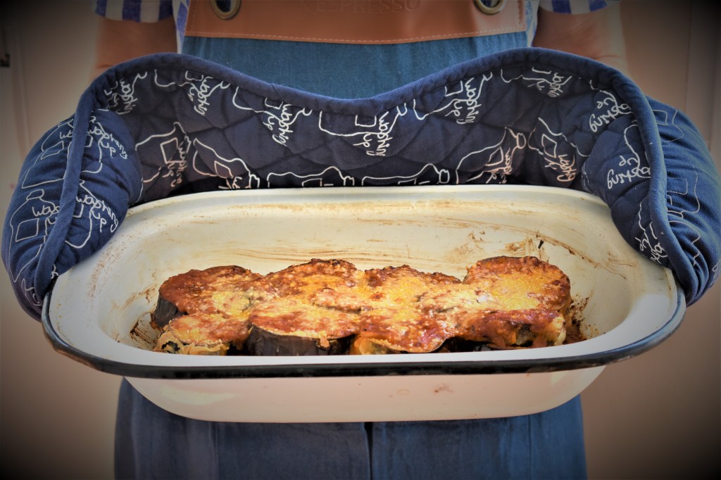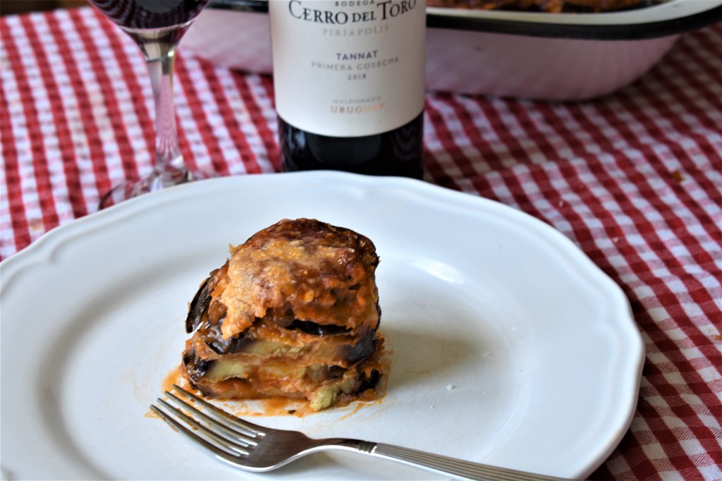 Esta receta es un plato típico del sur de Italia, de la bella Sicilia. Uno de los ingredientes protagonistas es la berenjena con parmesano rallado.Lleva también una salsa de tomate auténticamente italiana con su albahaca y queso mozzarella, aunque también en algunas regiones usan pecorino (queso de oveja curado). Un plato sencillo, donde la berenjena es cortada en rodajas de casi medio centímetro de espesor y se hacen fritas, aunque en una versión más light puede hacerse a la plancha o al horno. A mi me gusta cortar las rodajas más gorditas, para que no desaparezcan en las capas, y freir la berenjena. Aunque si las escurrimos bien podemos quitar el exceso de aceite y no preocuparnos tanto por ese «más» de grasas.La elección de las berenjenas es un verdadero ritual. Hay todo tipo de ellas, pero las perfectas para esta receta son grandes, ovaladas, con un vivo color violeta oscuro y brillante y, al tacto, deben ser firmes. El vino lo dejo a tu elección. Yo un tannat de mi tierra.