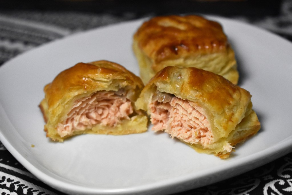 Hola a tod@s, hace días que tengo el blog abandonado. Ello no significa que tenga abandonada mi cocina, pero después de 2 meses de teletrabajo y confinamiento, ponerme al ordenador me resulta muy abrumador por decirlo de alguna forma. Lo asocio con el sufrimiento y pesar de esos días y me refugio a cocinar, alejándome todo lo que puedo de las redes y el aparato. Intuyo que he desarrollado una fobia post estrés. Para salir de ello, y coincidiendo con el fin del estado de alarma, voy a intentar ponerme al día. Hoy voy a traerles una receta que hice para usar mi hojaldre casero, el cual hice en los días del confinamiento. El hojaldre merece un post aparte. Pero intentaré daros unas ideas, y sino hasta que lo hagáis podéis usar uno comprado, que los hay muy buenos. Yo lo voy a estrenar con un wellington de mi pescado favorito: el salmón. La receta es inspirada en la del supermercado Lidl, que por cierto tiene un hojaldre muy bueno.