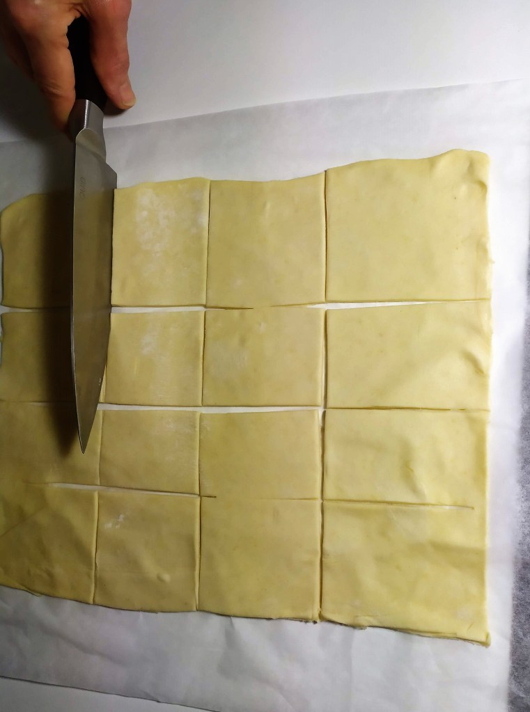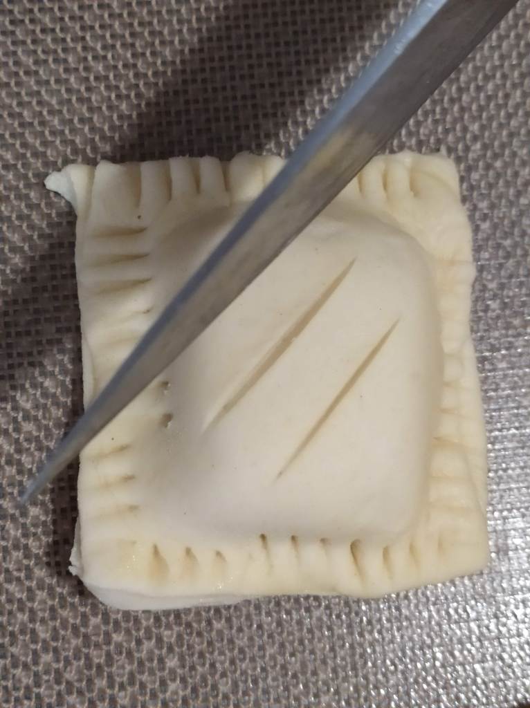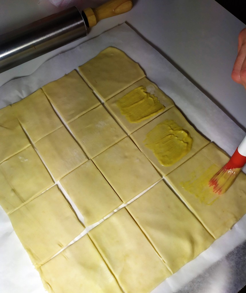 - Pintamos el hojaldre con huevo batido.