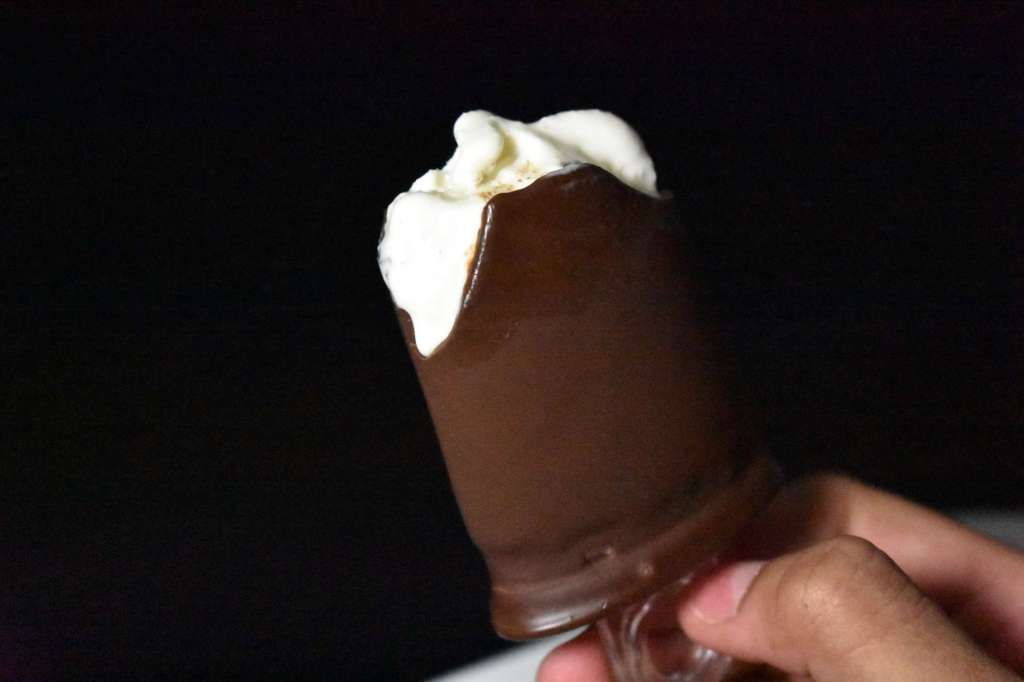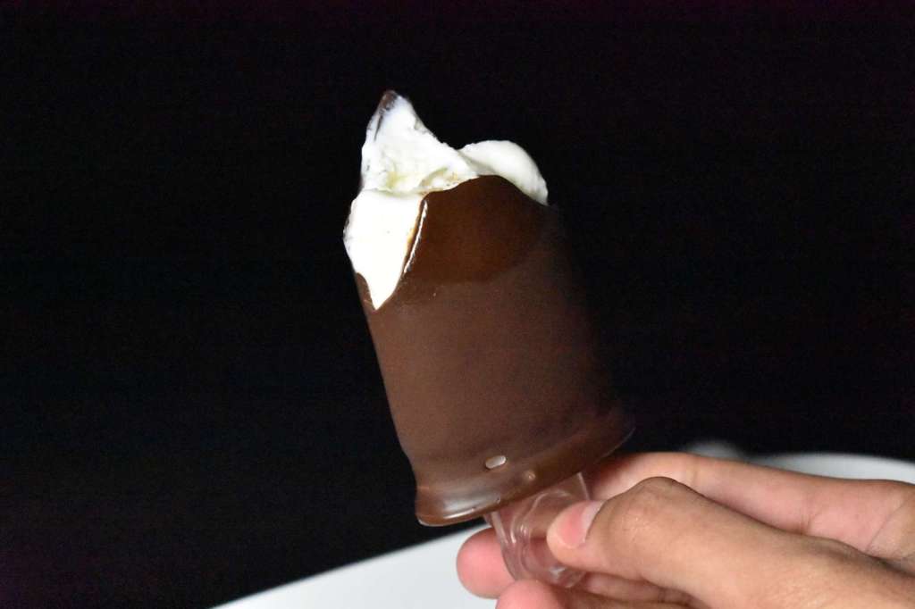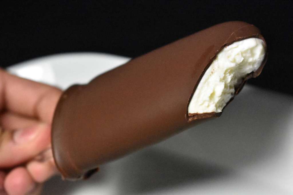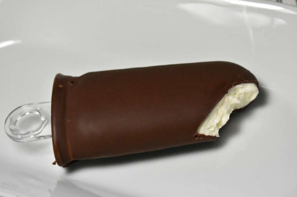 - Desmoldamos los polos, y los sumergimos unos minutos en el chocolate. El chocolate con el frío se congela enseguida.