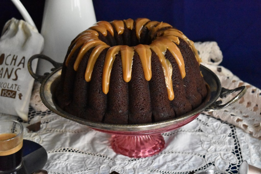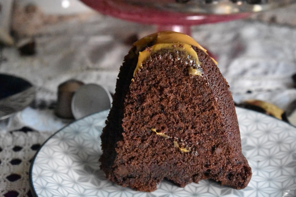 Esta receta se la debo a mi amiga Rosa, ya que fue una receta post confinamiento que compartimos en la vuelta al trabajo. Es de esos bizcochos densos y contundentes que no te deja indiferente. Y combina dos sabores que hacen un matrimonio perfecto. El toque se lo da la salsa de caramelo salado, pero puedes prescindir perfectamente de ella.