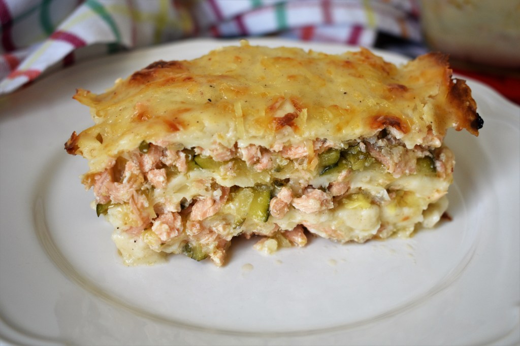El verano es época de calabacines, y que mejor que combinarlos con mi pescado favorito: el salmón. Esta «lasaña» no lleva pasta, por lo que es un plato muy rico y sanote. El queso y la bechamel le aportan el punto calórico que compensa la ligeresa del calabacín y el sabor intenso del salmón. Bueno, que quiero convencerte, un plato sencillo que es un platazo para darle salida a esos calabacines que huelen a verano.