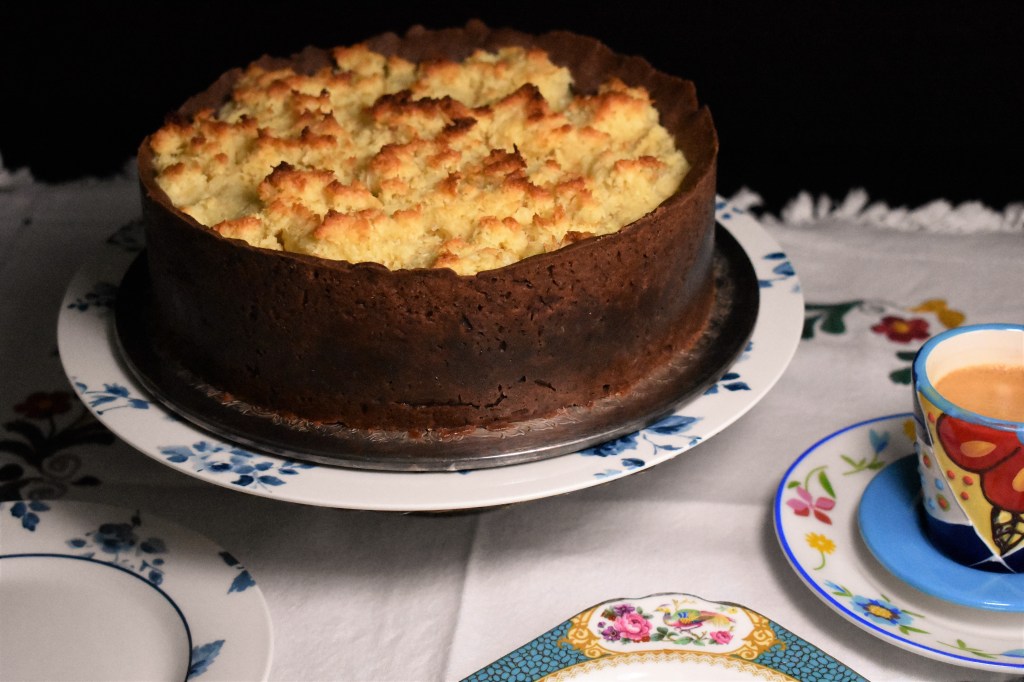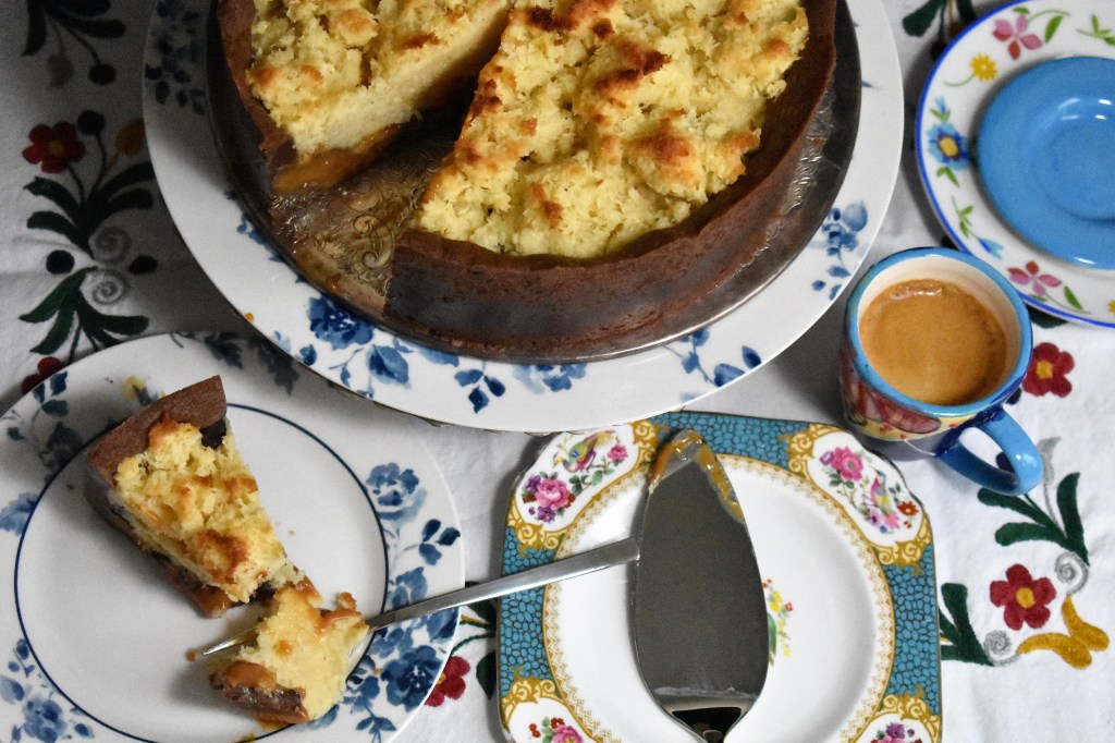Hoy vamos a pecar. Y para ello vamos a culpar a nuestro querido gran cocinero uruguayo @hugosoca. Esta tarta fue una de las recetas del curso de julio, con gusto a alfajor. Ya sabéis lo que nos gusta a los rioplatenses el dulce de leche, así que esta tarta te va a transportar a cualquier lugar de nuestra geografía. A la merienda sin igual, la del sabor a chocolate, coco y dulce de leche. Rica no, esta tarta es lo siguiente. Yo la hice en molde de 20 cm, pero si queréis que el crumble de coco os quede más plano, usáis un molde de 22-23 cm.