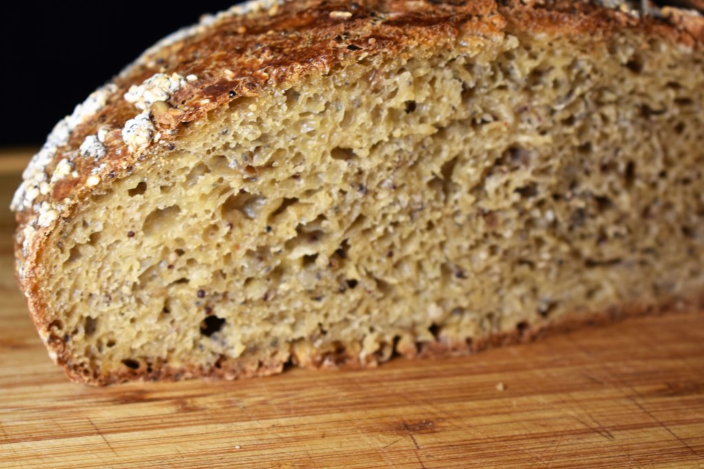 - Agregamos las semillas hidratadas, sal. Vamos amasando y agregando el resto del agua de a poco hasta formar una masa bien mezclada. Tapamos con un trapo de lino o un film y dejamos hacer la autolisis durante 20 minutos. Cuando juntamos la harina y el agua, y la mezclamos bien, mientras reposa conseguimos que la harina se hidrate y facilitamos el amasado. Mediante la autolisis se empieza a desarrollar el gluten y la masa empieza a amasarse por si sola.