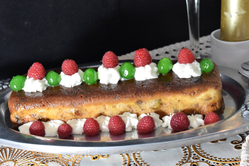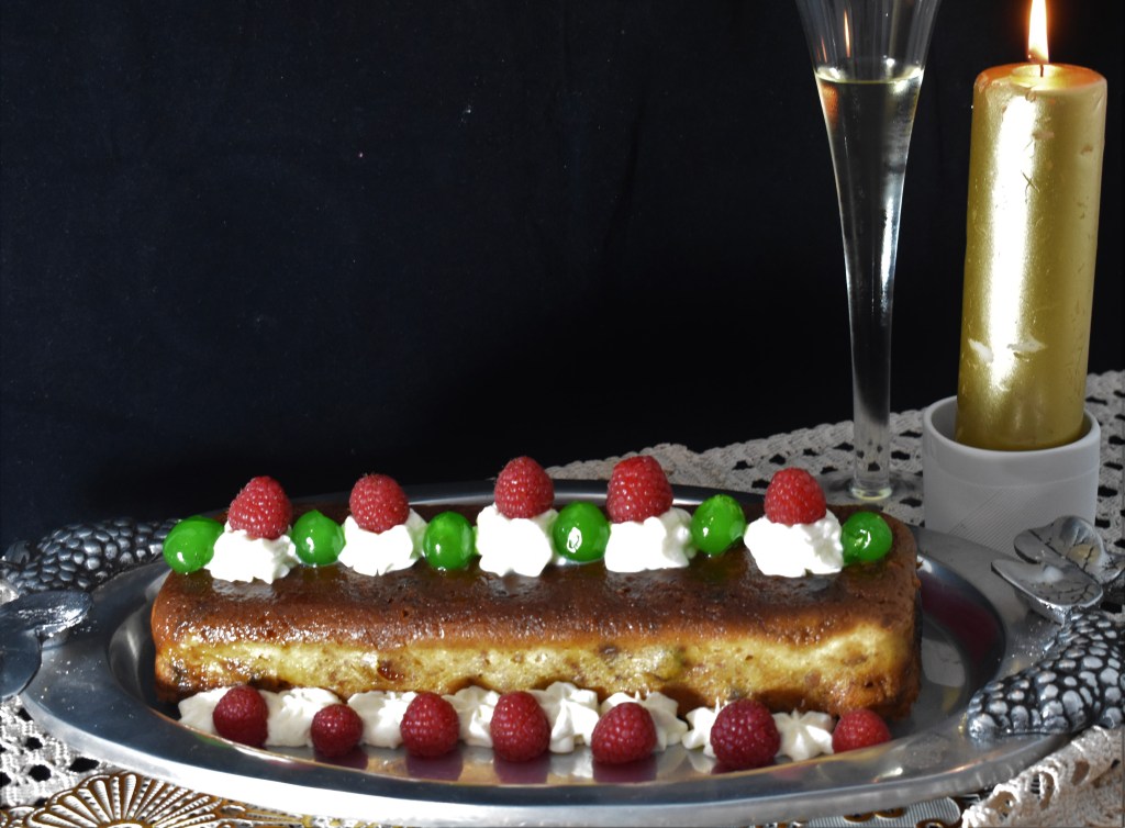 Esta es una receta de aprovechamiento, y la vamos a vestir de Navidad. Bien podríamos hacerla con brioches antiguos, magdalenas u otro dulce seco. Pero si te sobra panettone , o si como yo, hicistes pruebas y alguno no te quedó como quería, esta es tu receta. Incluso, puedes sacrificar 300 g de tu panettone para hacerlo y vestir tu mesa con un postre super super navideño.