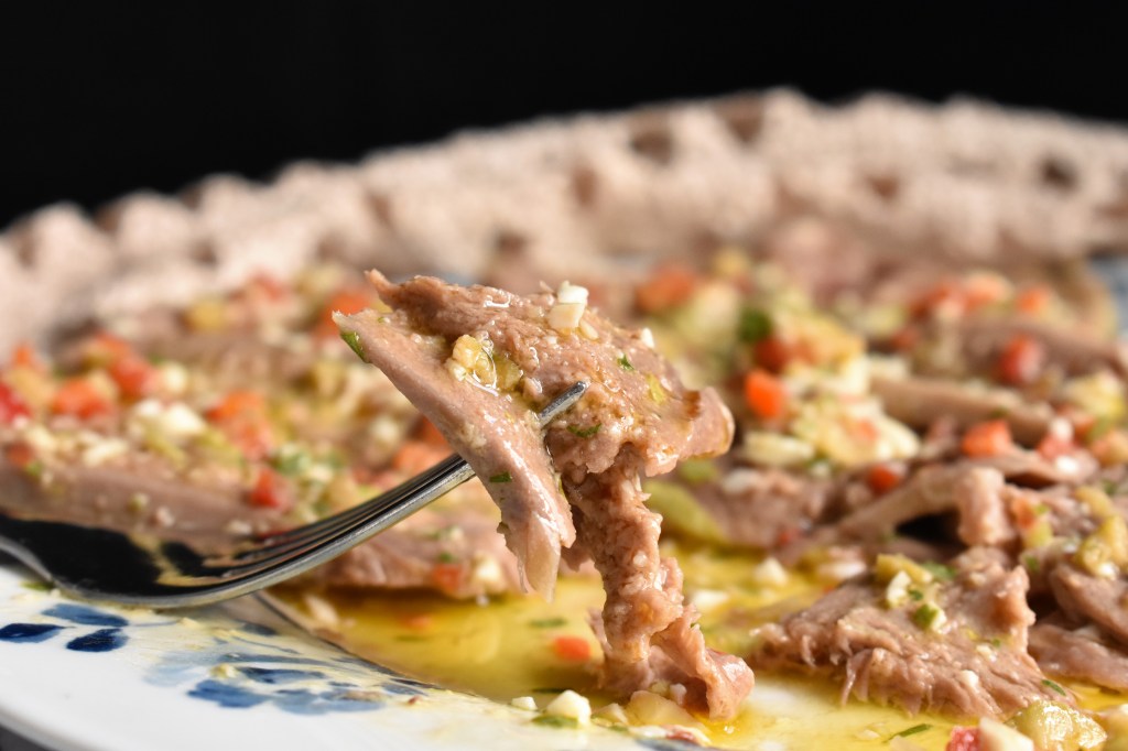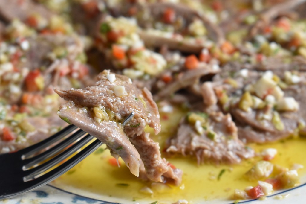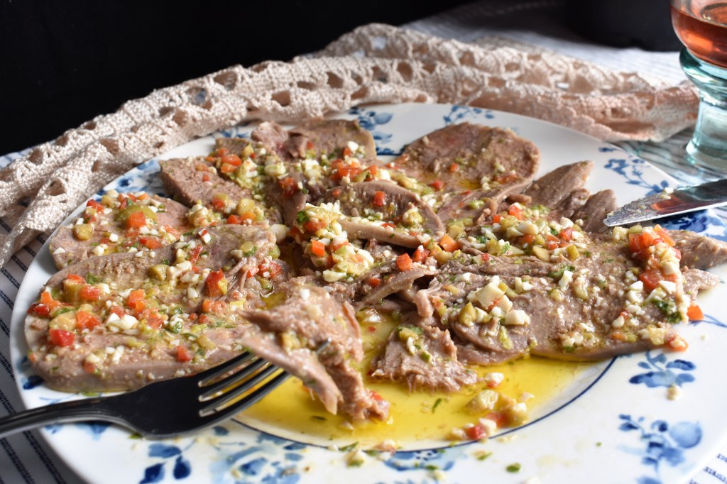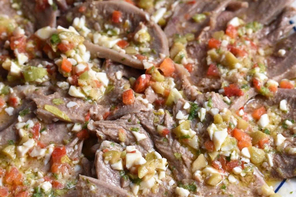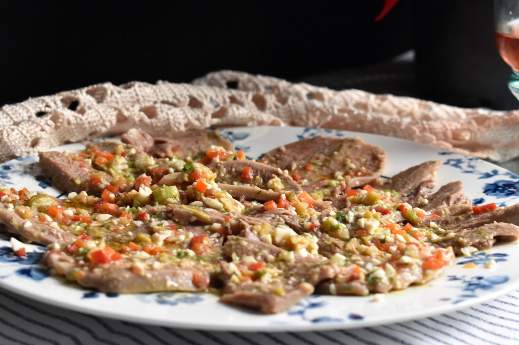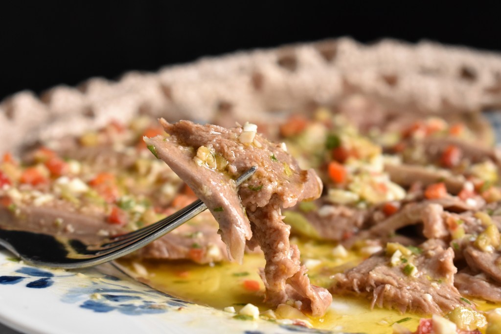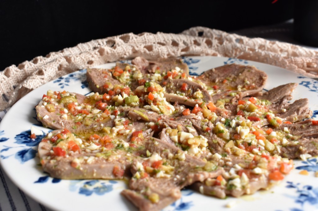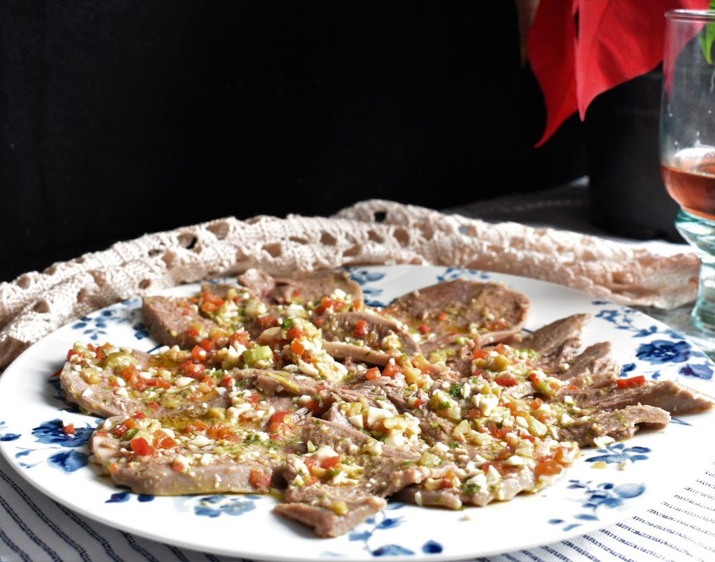 Si hay una receta muy añorada por mí, muy uruguaya, muy de Navidad esa es la lengua a la vinagreta. Para hacerla puedes seguir el modo tradicional o el modo sous vide. Si tienes tiempo, paciencia y lo necesario para controlar la cocción a baja temperatura, el segundo es tu método. La lengua, por su aspecto tal vez te provoque rechazo, pero si sigues un correcto método de limpieza y cocción, descubrirás una carne, sabrosa y tierna sin igual. Para la cocción he seguido las indicaciones de Joan Roca. La vinagreta es a mi gusto, pero tú puedes elegir el tuyo.