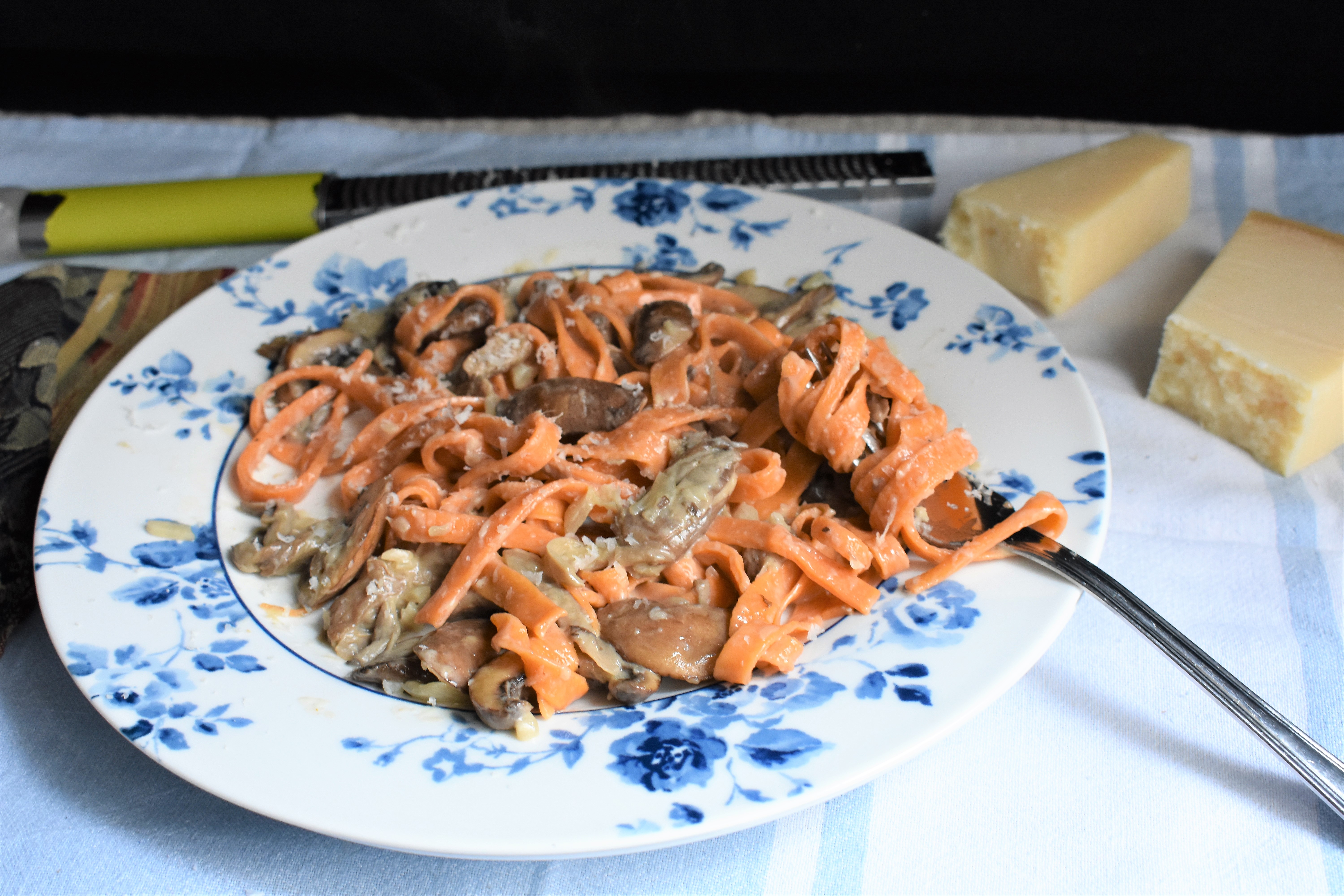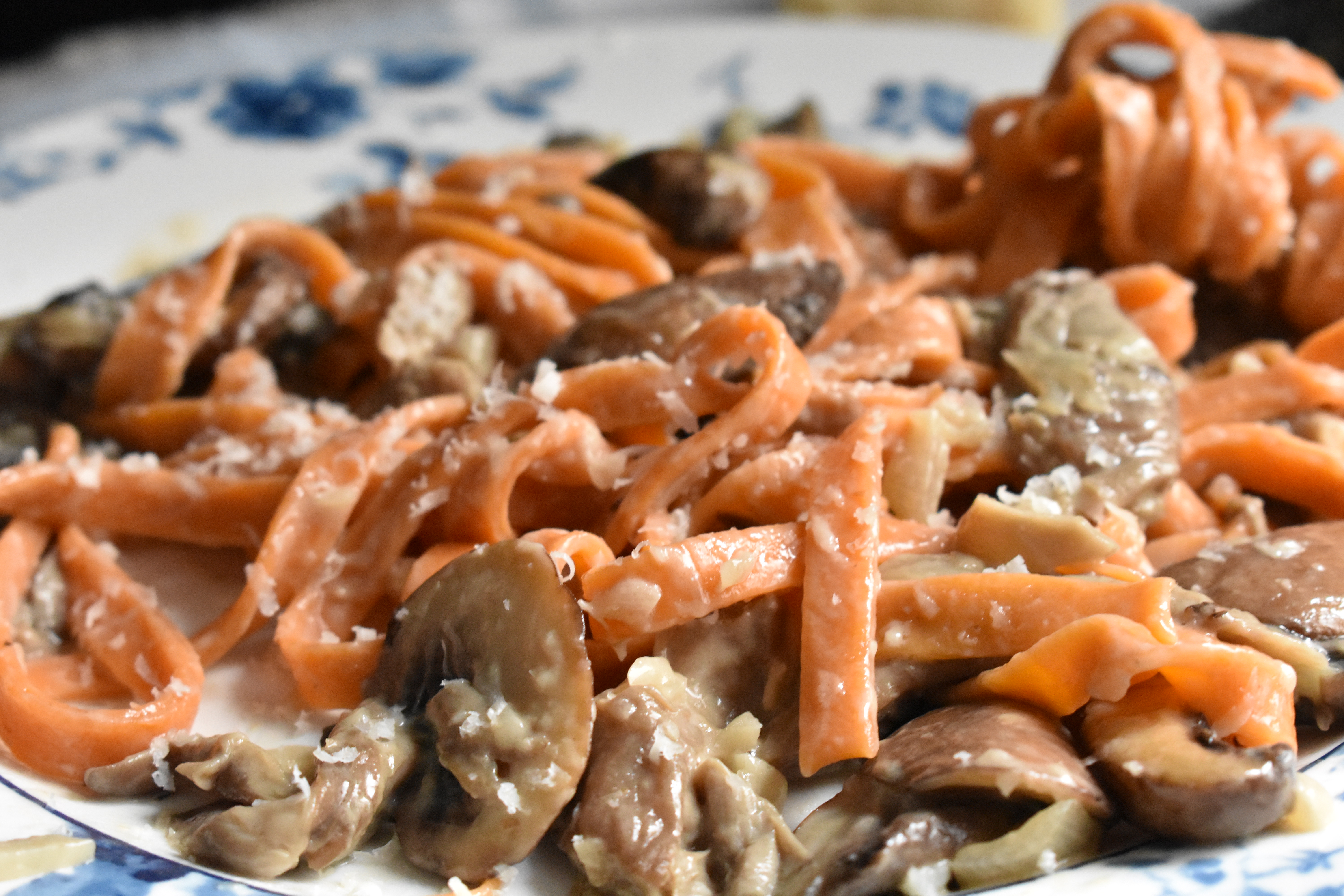 Hoy es sábado, y gran día para amasar. Te propongo una receta sencilla pero llena de sabor. El toque de trufa es actualmente algo accesible con una salsa tartufata que venden en supermercados a base de setas, queso parmigiano y trufas ( un 1,5% solamente) que le da un toque maravilloso. Yo lo compré en el Corte Inglés, pero también está en Carrefour. En Mercadona la encuentras con trufa negra. También puedes usar trufa si encuentras en algún mercado. La pasta la puedes hacer con un buen rodillo o ayudarte con una máquina. Un punto importante es la harina.
