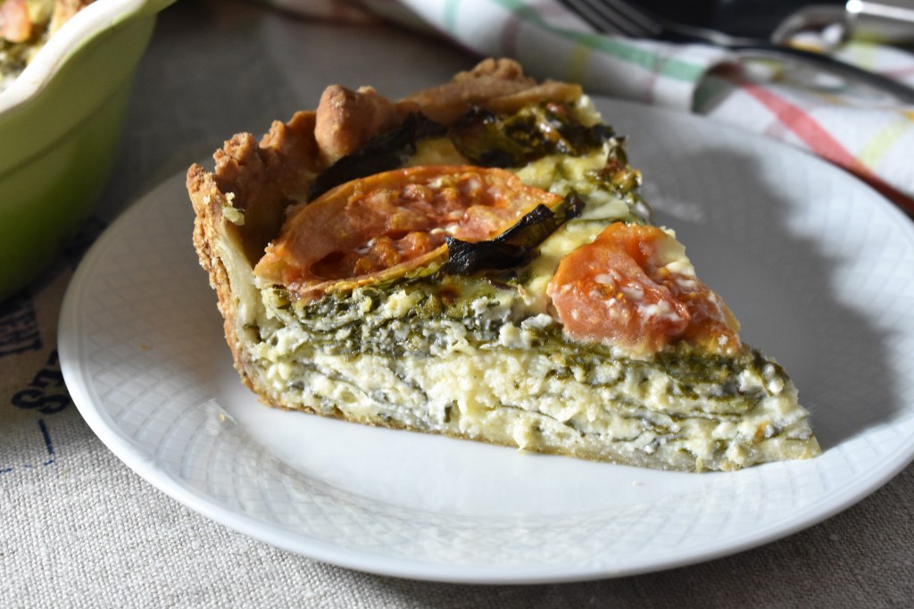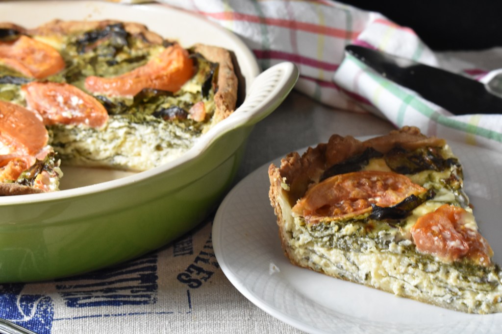 Esta tarta salada es de las que siempre solucionan la cena, sobre todo en verano. O una comida informal. El secreto de esta tarta está en la masa. El relleno es un poco a mi gusto, pero puedes adaptarlo a los tuyos. Con brócoli, acelgas u otras verduras/hortalizas que te apetezcan, estará igualmente genial.