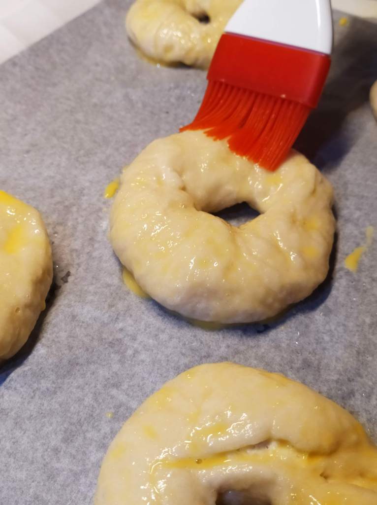 - Pintamos con la yema batida con leche y los espolvoreamos con semillas de sésamo.