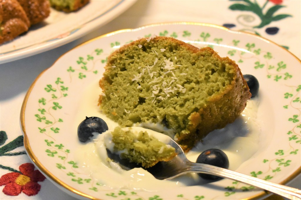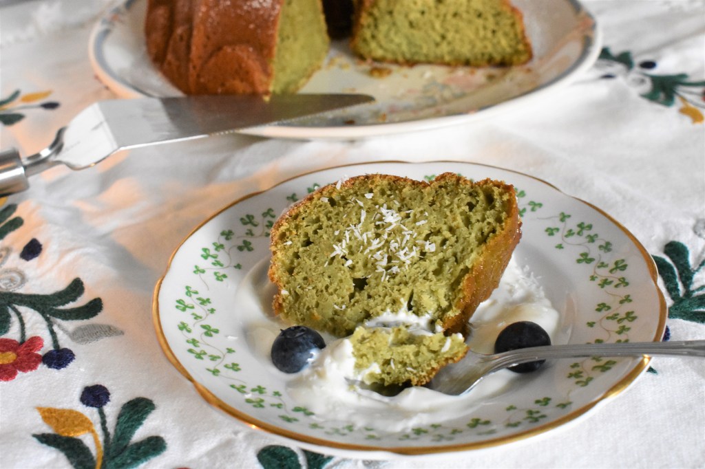 El té matcha es la hoja entera del té verde que tras un proceso especial de cultivo, recolección y secado, se muele para obtener un polvo fino y verde intenso que multiplica los beneficios del té verde. Aunque el té molido tiene su origen en la China de tiempos de la dinastía Song, han sido los monjes Zen del Japón los que lo popularizaron. Durante largas horas de meditación bebían matcha para permanecer alerta y tranquilos favoreciendo la concentración y la claridad de la mente sin nerviosismo. Hoy vamos a usarlo para hacer un bizcocho, que puedes acompañar con una salsa de yogur, coco y frutos rojos. Se trata de una combinación de sabores exquisita, para un bizcocho húmedo y consistente con todo el sabor del té.