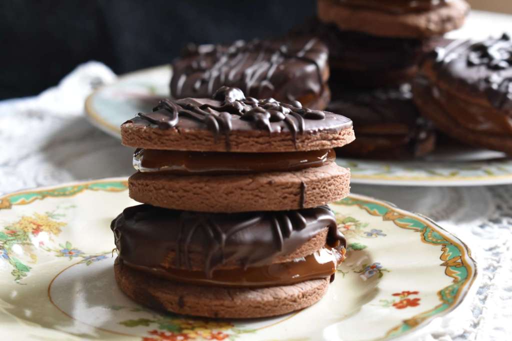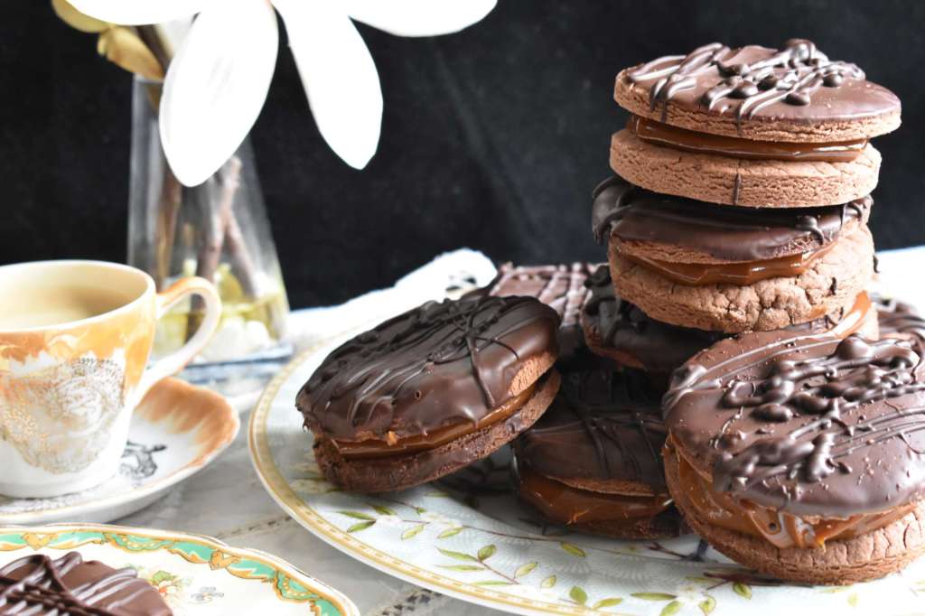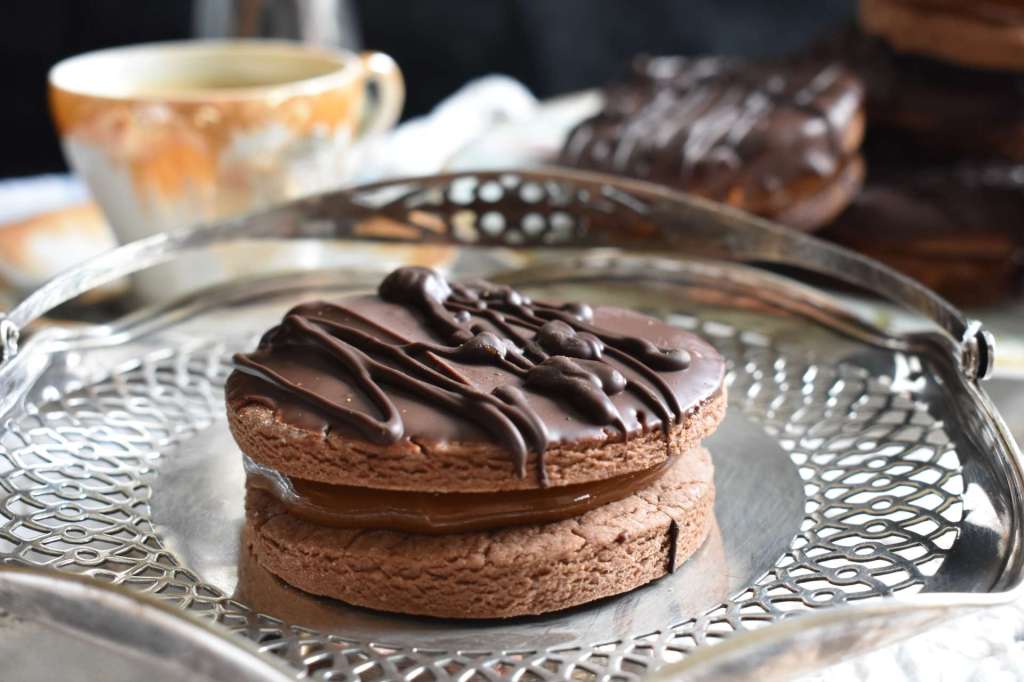 - Cuando estén bien frías, vamos uniendo de a 2 con dulce de leche repostero, que al ser más duro no se escurre.