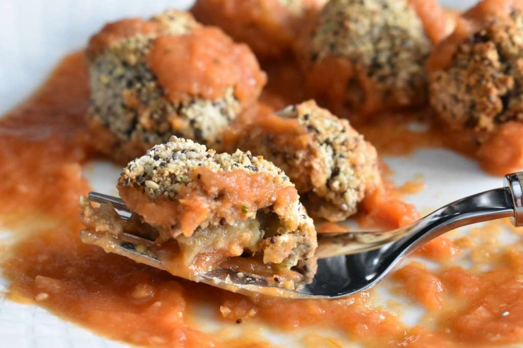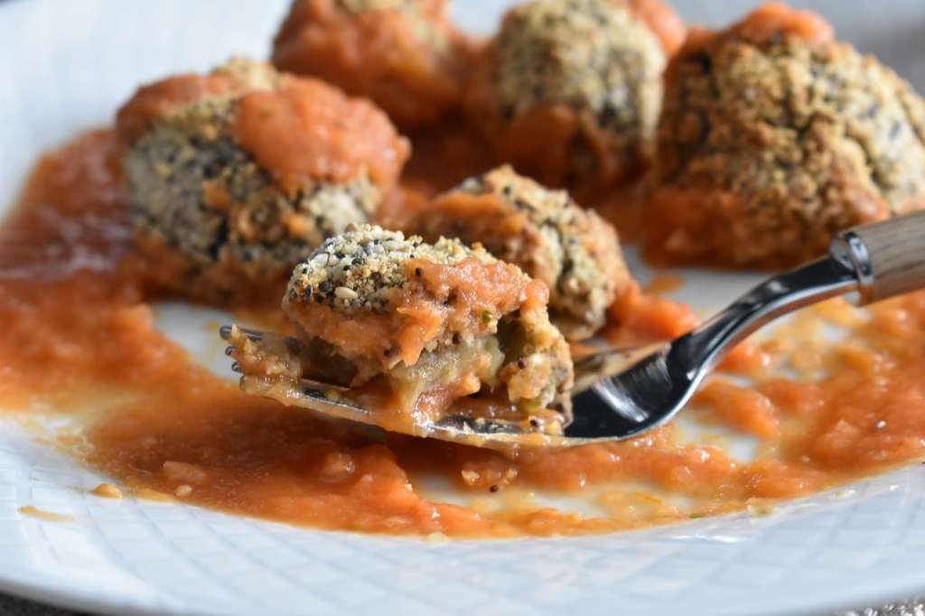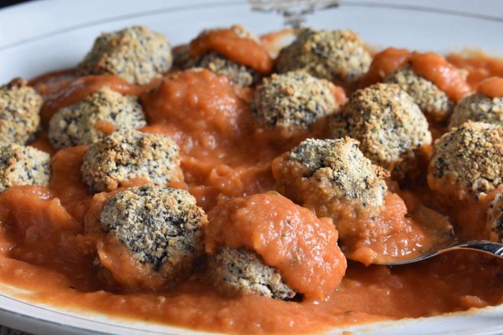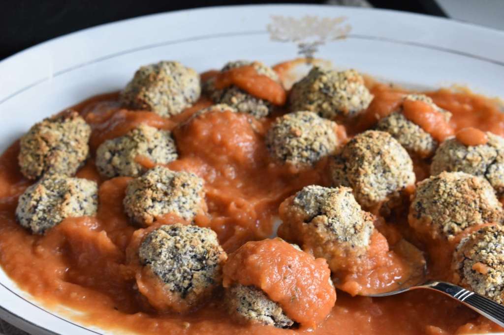 - Formamos las albóndigas, rebozándolas con pan rallado mezclado con semillas.