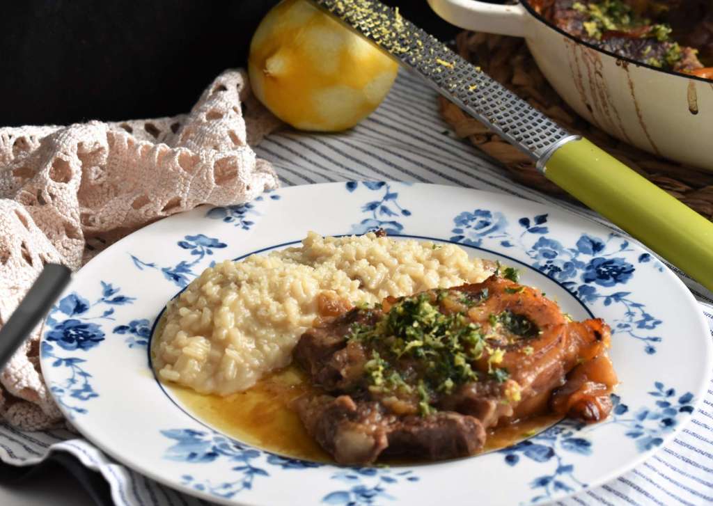 La gremolata es un aderezo/condimento típico milanés que sirve para dar un mayor sabor a las preparaciones a base de carne. Proviene de la palabra milanesa gremolà , que significa «reducido a granos». Se trata de una mezcla de ajo, perejil y ralladura de limón, una mezcla capaz de dar perfume, frescor y sobre todo de desengrasar la boca a partir de una preparación larga y grasosa. El ossobuco es un corte de carne de vaca, que proviene de la tibia del animal, que contiene el hueso con el orificio por donde pasa la médula.