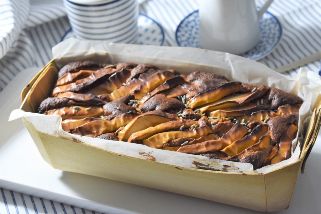 Este verano he descubierto la harina de cacahuete o maní como le llamamos en nuestras tierras del sur. La vende a buen precio Mercadona, y con el hándicap de que viene desgrasada. Proteína pura. Así fue que pensé utilizarla en un bizcocho con bajo índice glucémico, para sacarle todo lo bueno a esa harina. La combiné con harina de almendras para no aportar gluten, y en grasas lleva la de los huevos y el aceite de coco. Utilicé azúcar de coco, pero puedes endulzar con azúcar moreno o moscabado. Los aromas van a tu gusto, pero el limón y la lavanda son un buen matrimonio. Pero eso ya va en gustos. También puedes usar albaricoques o melocotones, si no tienes manzanas. Te invito a probarlo. Te encantará.