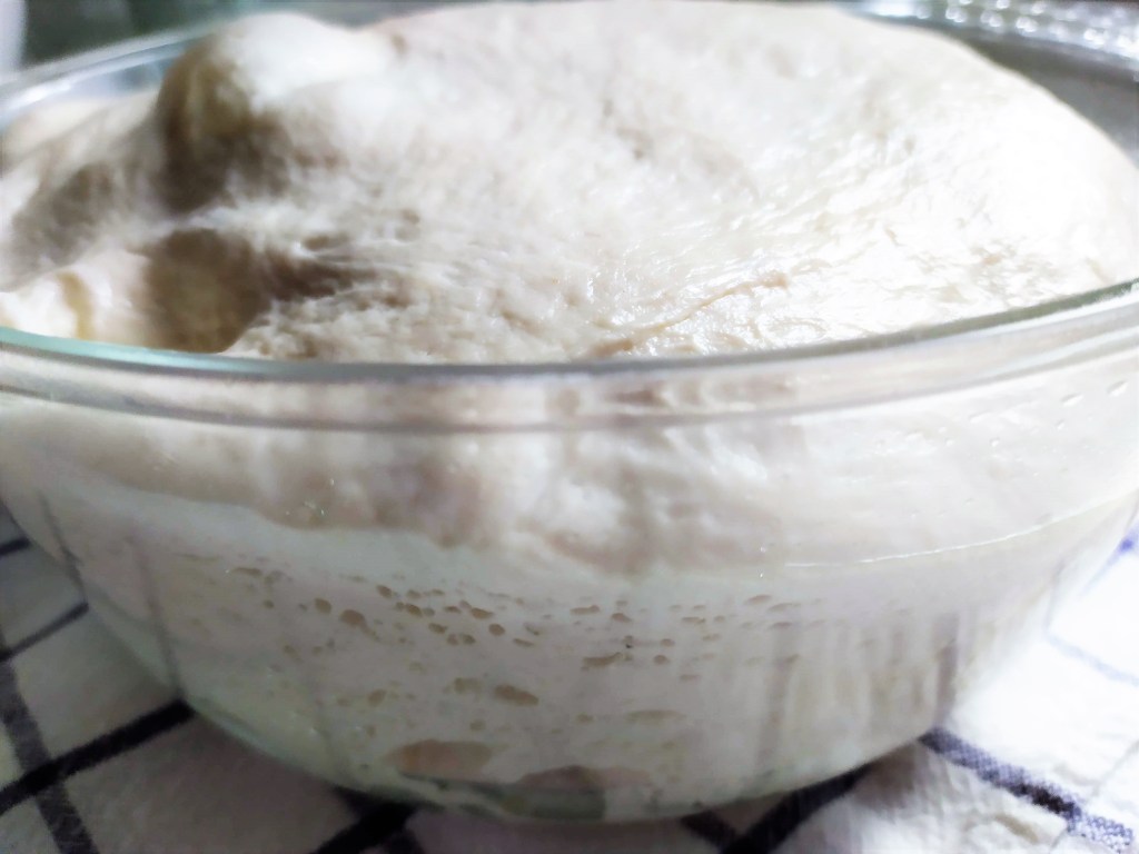 - La dejamos reposar bien tapada con film para que se desarrolle el gluten, y se amase «sola».