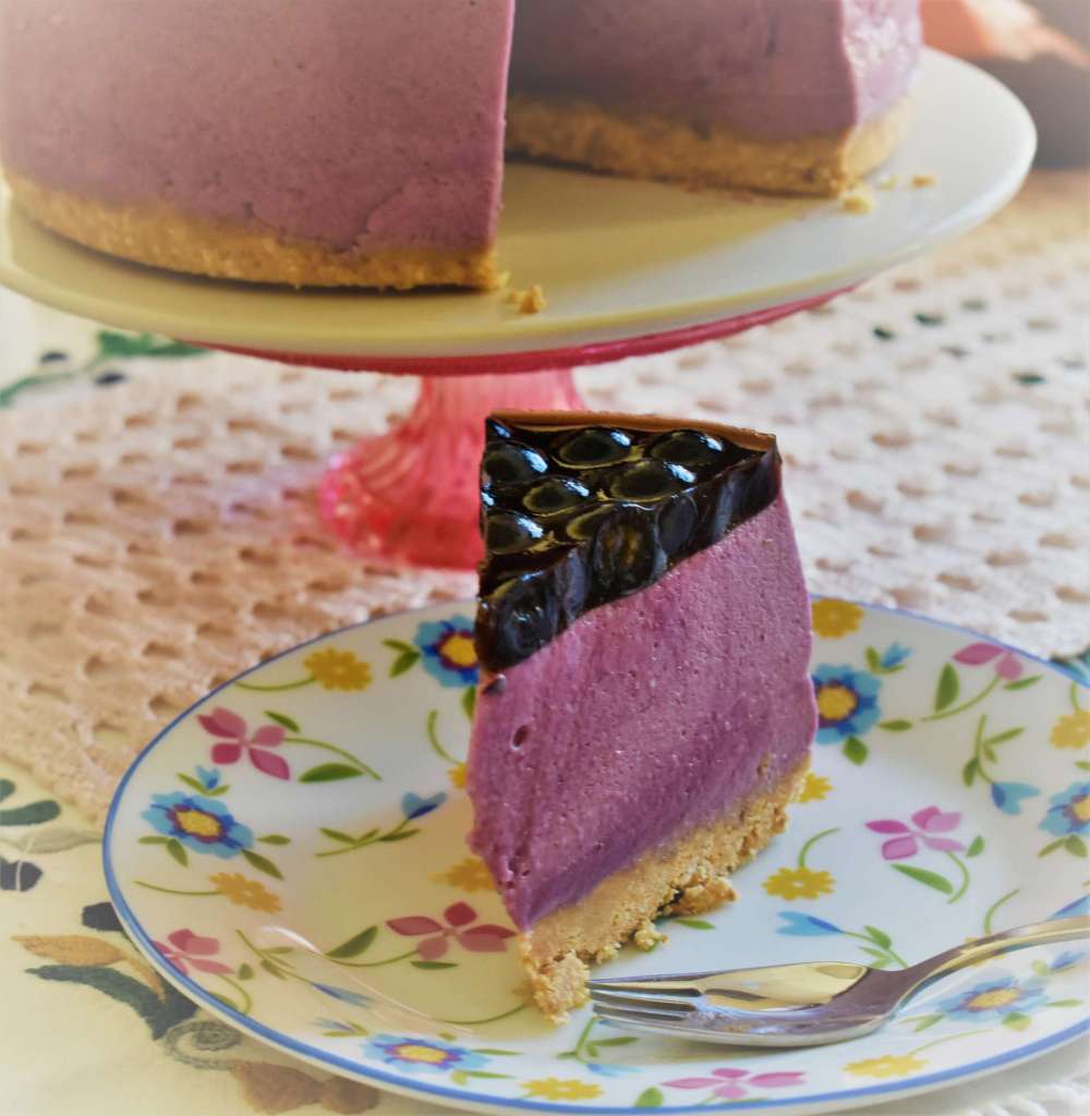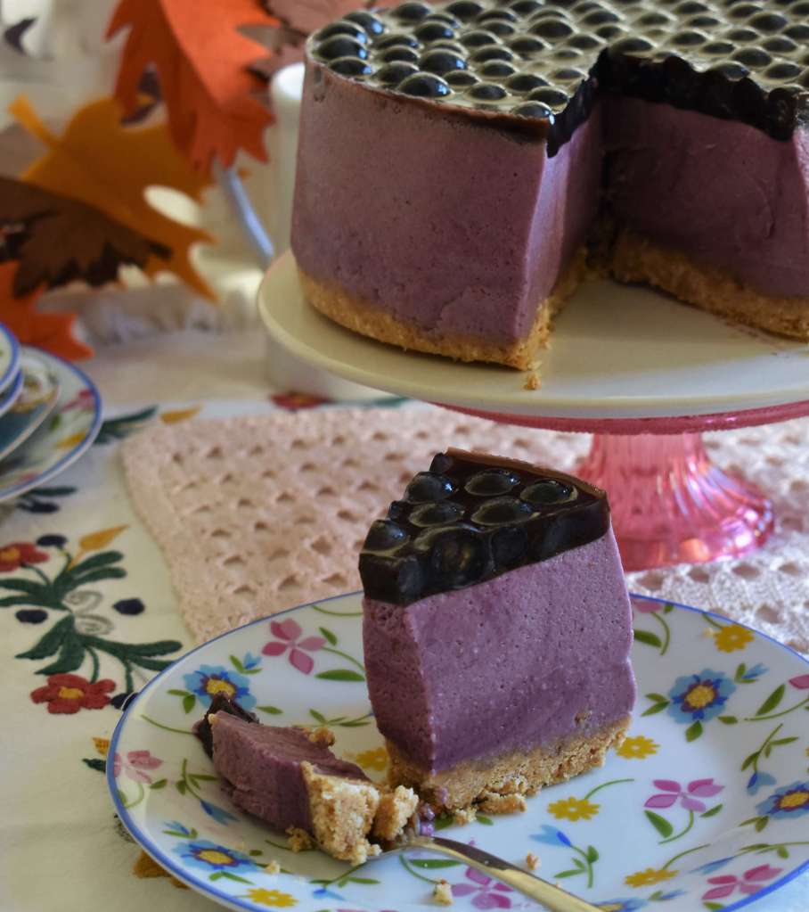 La uva garnacha, también llamada tinta o negra, es una variedad de uva resistente a la sequía y el frío que es la base de muchos vinos de nuestra tierra. Tuve la suerte que me regalaron unas cuantas y decidí usarlas para hacer esta tarta tipo cheescake sin horno. Primeramente hice una confitura, exquisita sin más. En el próximo post pondré una opción de mermelada con uvas blancas que también puedes adaptar a las uvas negras. Te encantará. Y si luego te apetece, haces esta tarta tan vistosa y otoñal.
