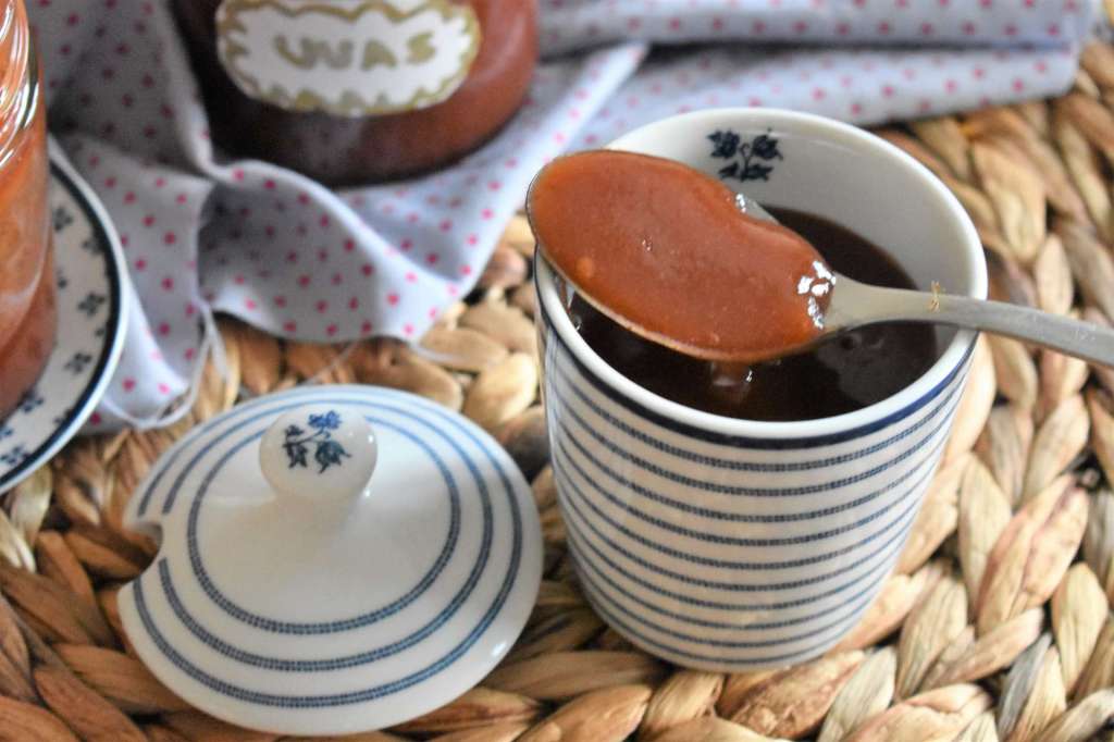 - Probamos el punto echando una cucharadita en el plato congelado; en unos segundos debe estar espesa. Si no es así, llevamos al fuego unos minutos más, removiendo constantemente.