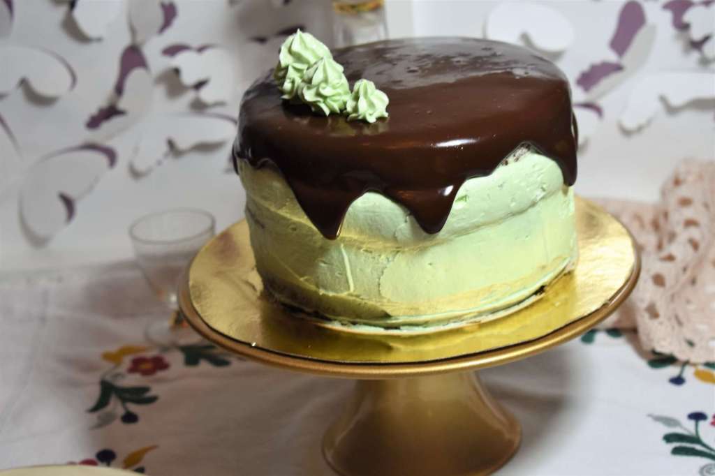 - Y ponemos el último bizcocho boca abajo. Así nos aseguramos unos bordes perfectos en la parte superior. Sellamos las paredes de la tarta con un poquito de buttercream.