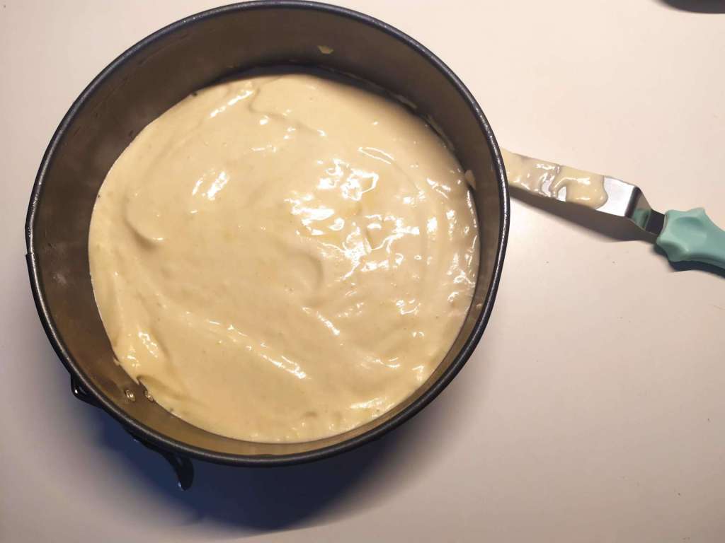 - Vertemos en el aro preparado colocado encima de una bandeja pequeña o molde forrado.