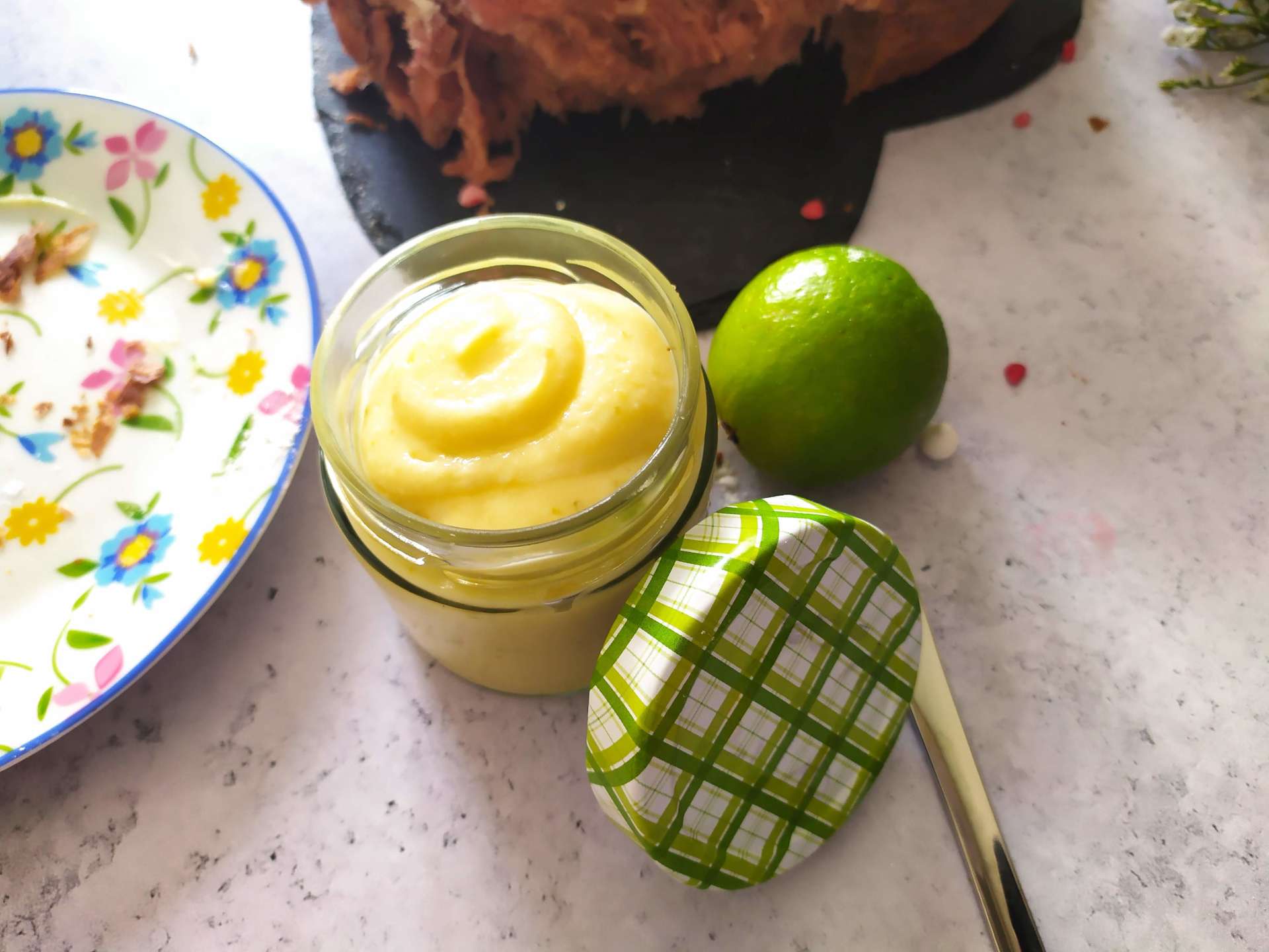 - Echamos en un cazo el azúcar, la ralladura y el zumo de lima y los huevos batidos y mezclamos.