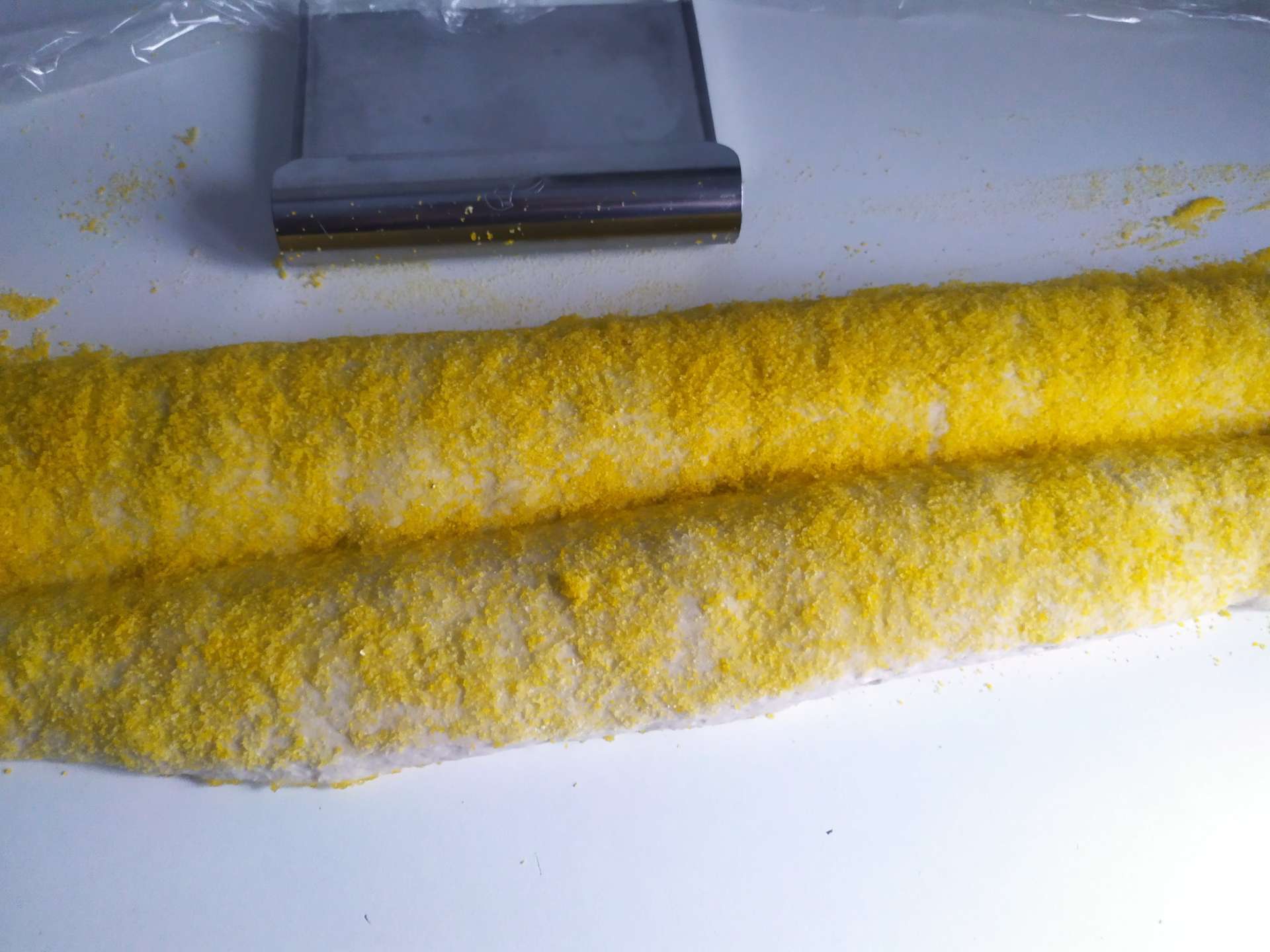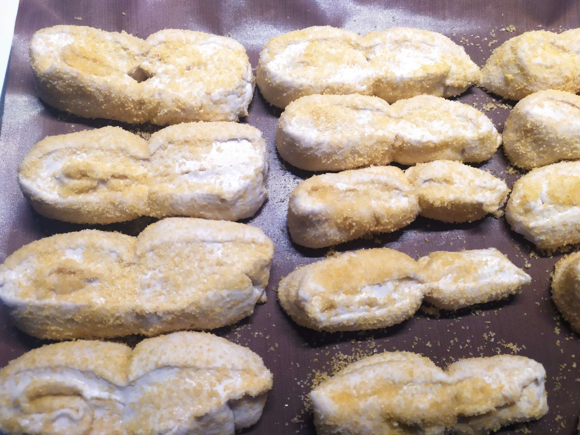 - Luego cortamos una por una las piezas en forma transversal de unos 2-3 cm. rebosamos por el corte con harina de maíz y colocamos en una asadera con el corte hacia arriba. Dejamos descansar unos 20 minutos.
